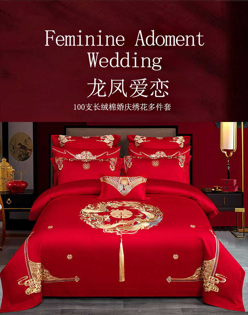 当前位置: 91家纺网 > 商品网购 > 床品套件 > 四件套 > 婚庆四件套 > 蒂爵 全棉纯棉长绒棉时尚绣花婚庆四件套多件套 龙凤爱恋