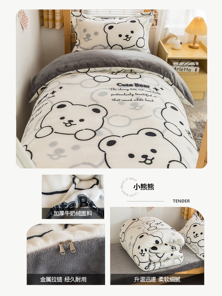 当前位置: 91家纺网 > 商品网购 > 床品套件 > 三件套 > 宅部落 2024新款舒适高克重牛奶绒学生宿舍三件套 小熊熊