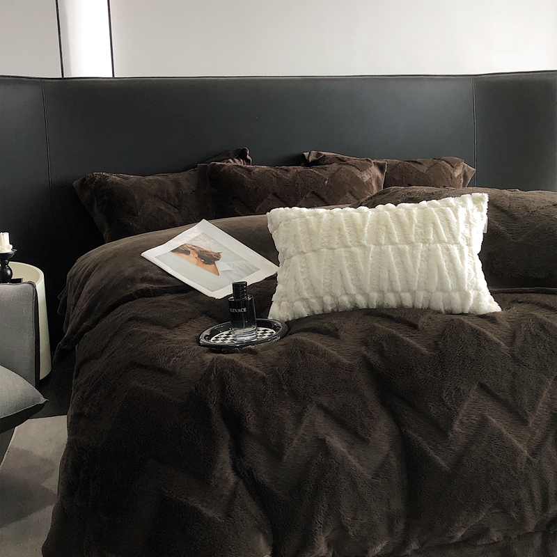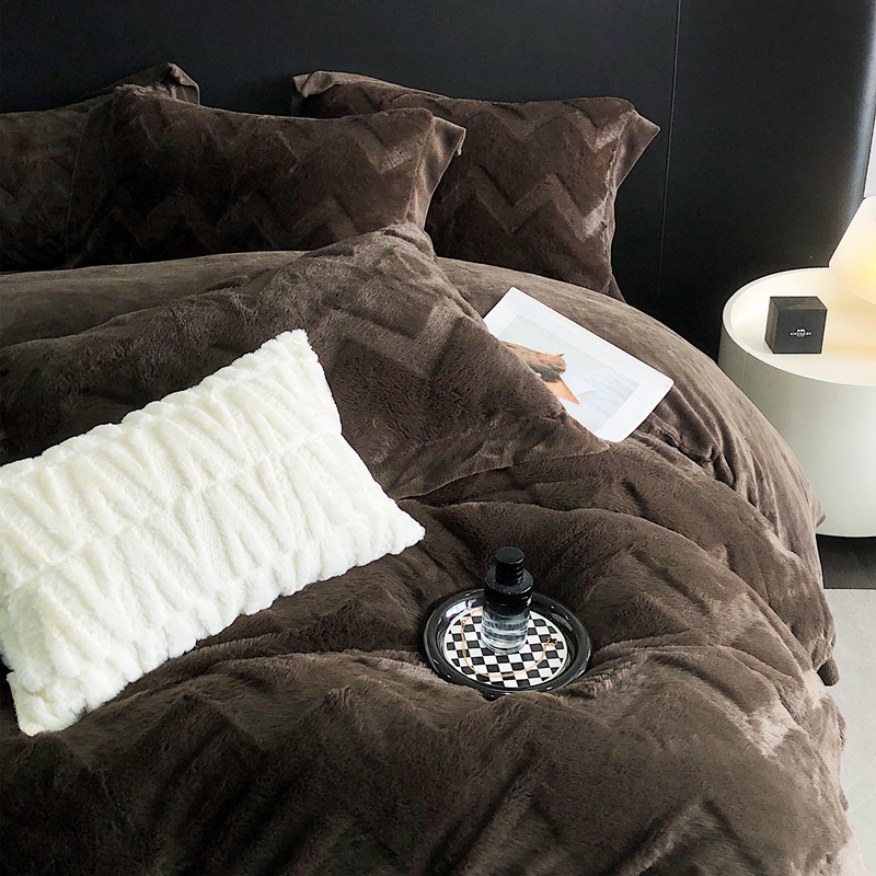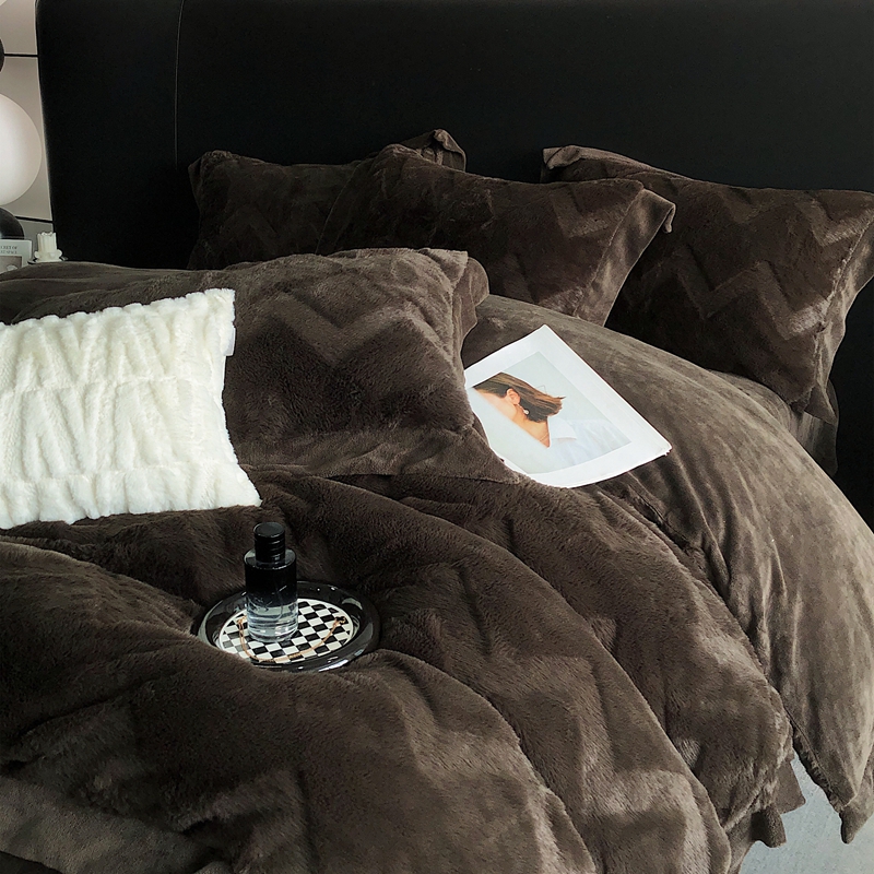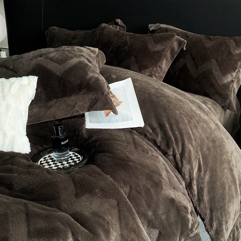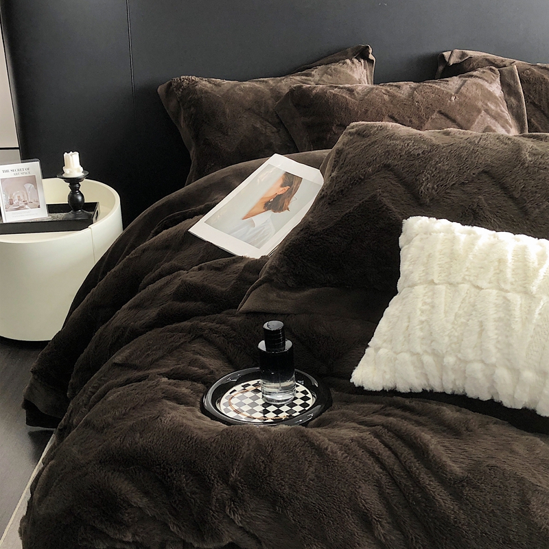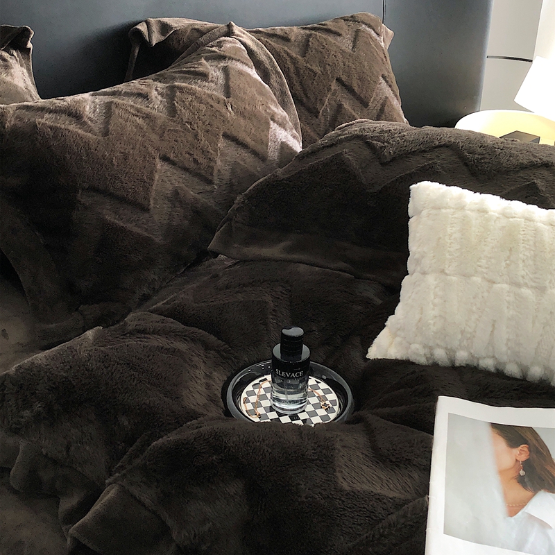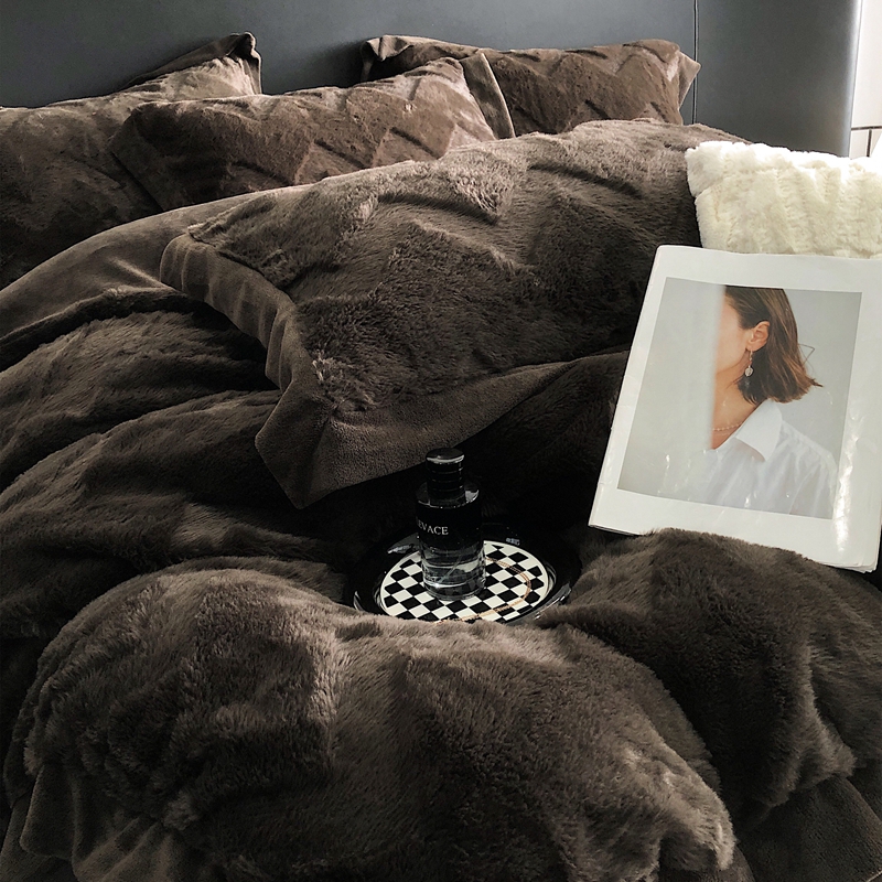 商品名称:罗优新款轻奢兔毛四件套A版320克兔兔绒,B版220克牛奶绒轻奢-摩卡棕