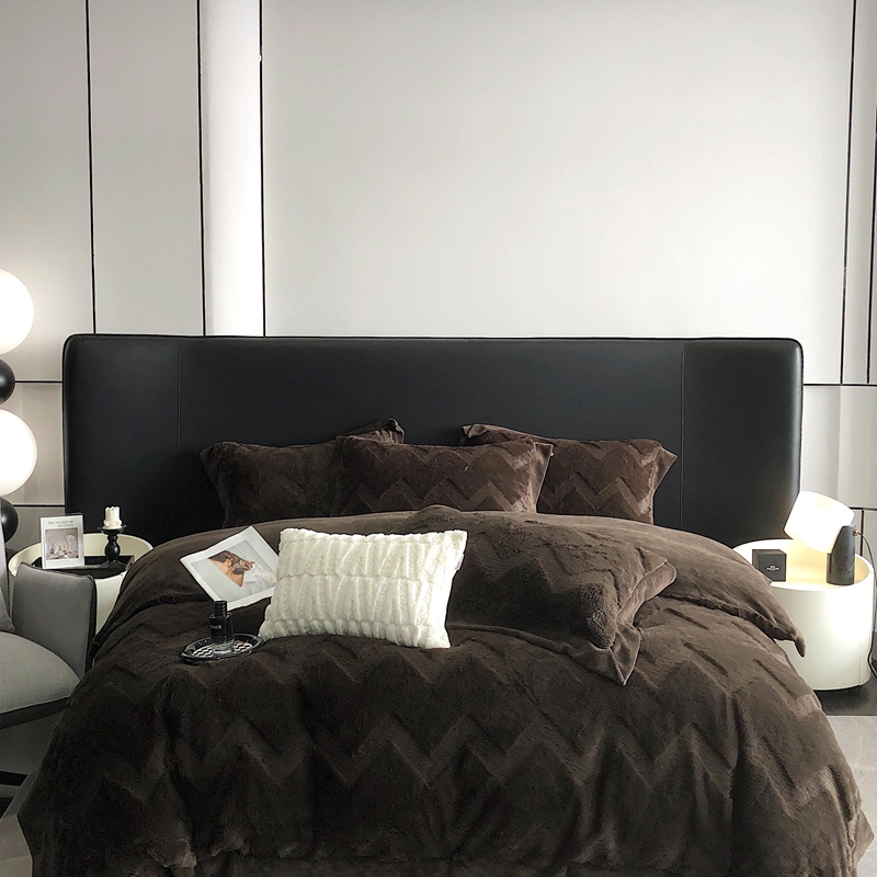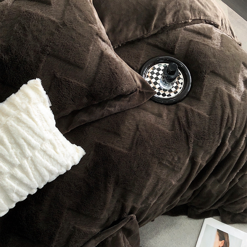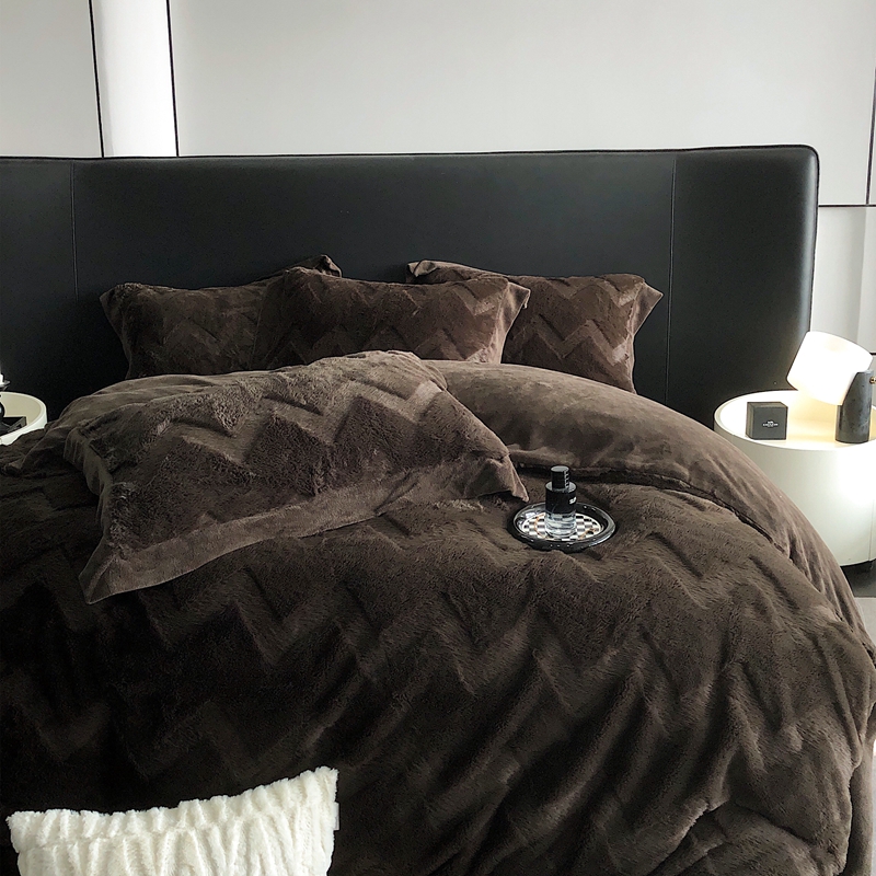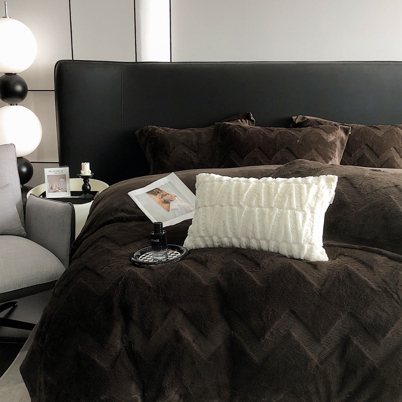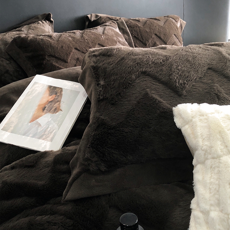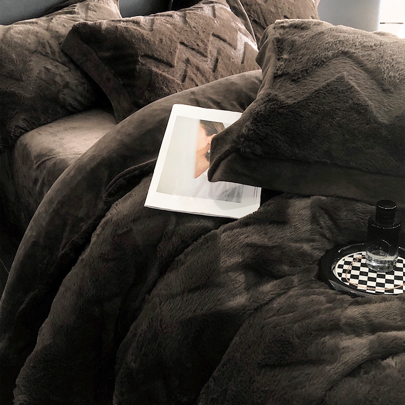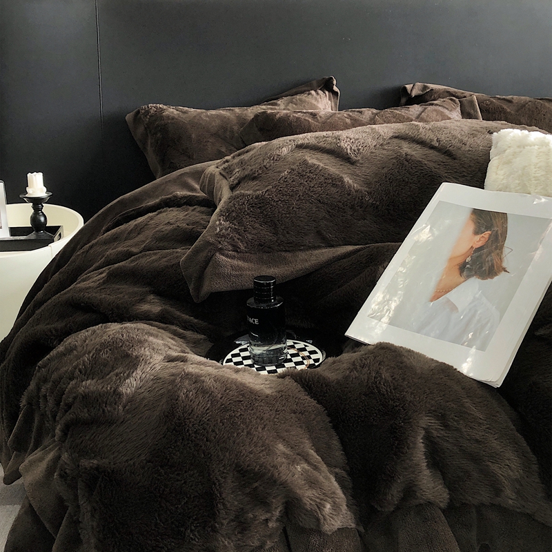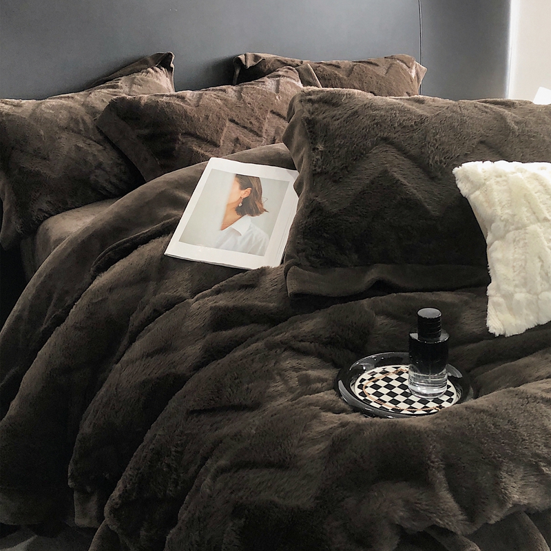 商品名称:罗优新款轻奢兔毛四件套A版320克兔兔绒,B版220克牛奶绒轻奢-摩卡棕