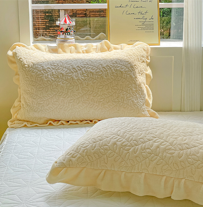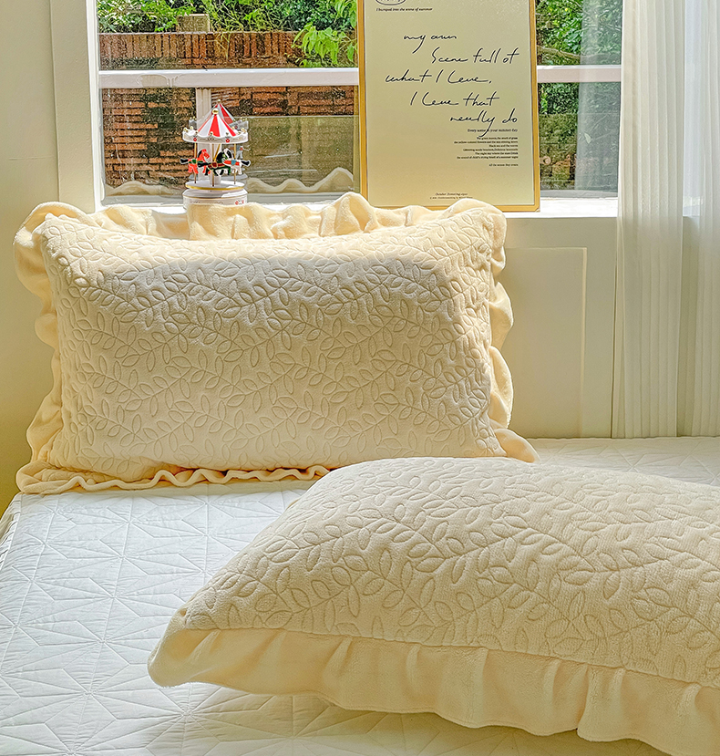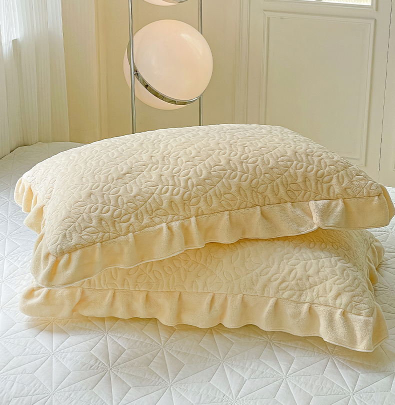 漫时光 2025新款纯色牛奶绒花边款枕套 罗曼-奶杏