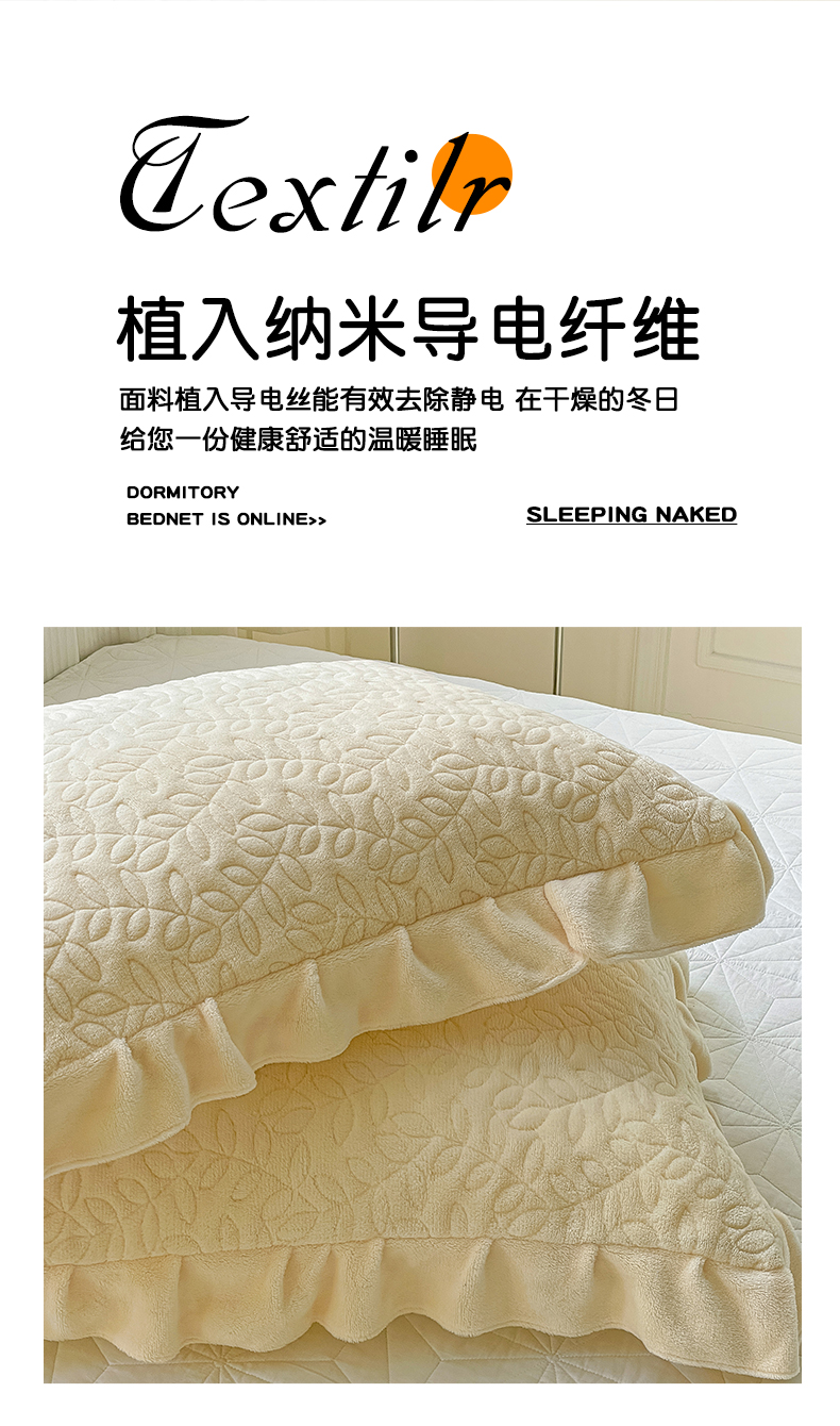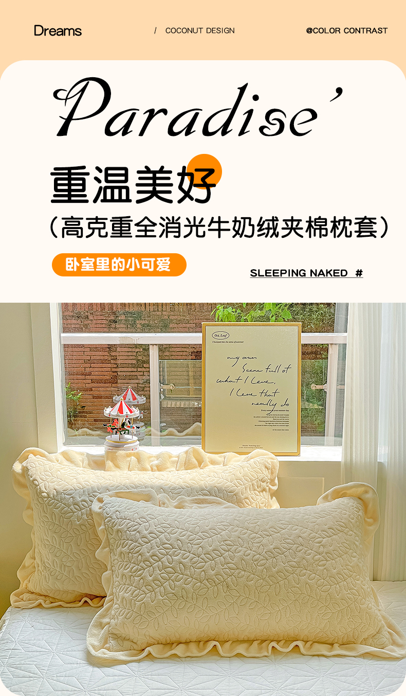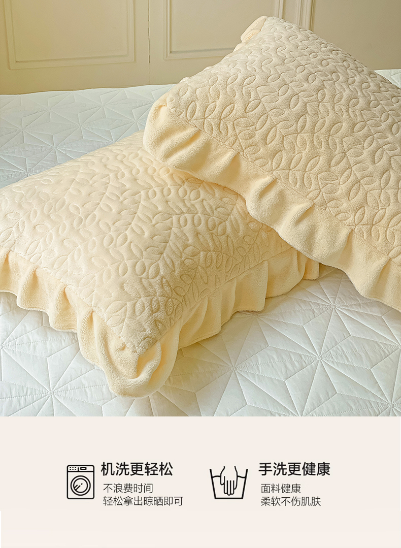 商品名称:漫时光 2025新款纯色牛奶绒花边款枕套 罗曼-奶杏