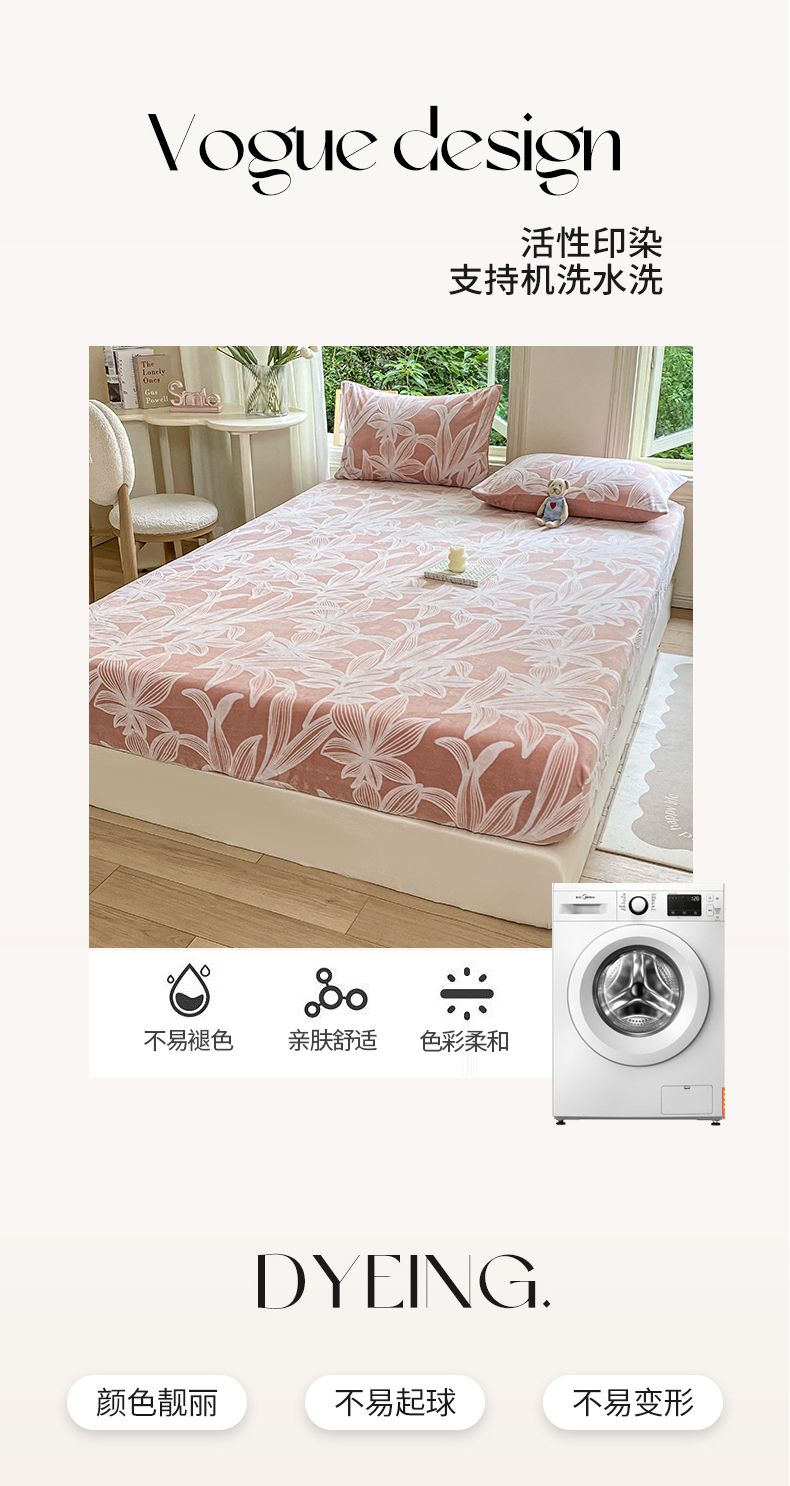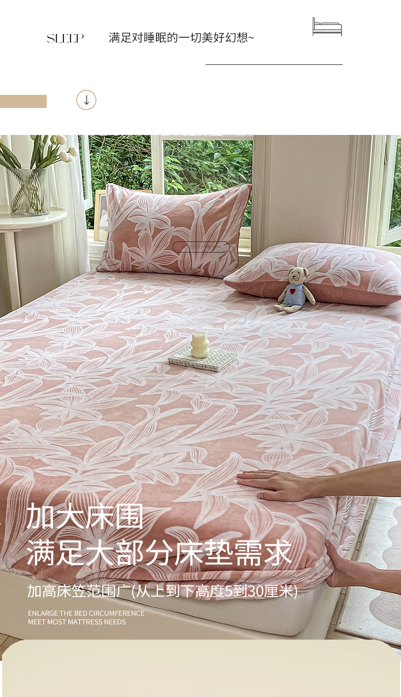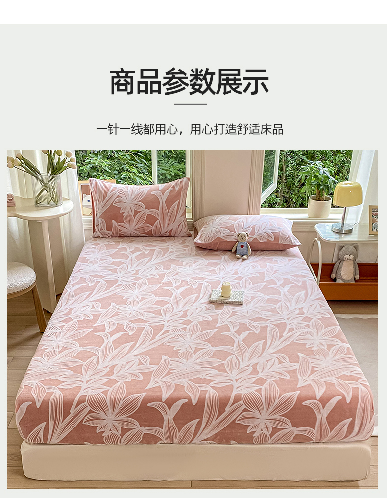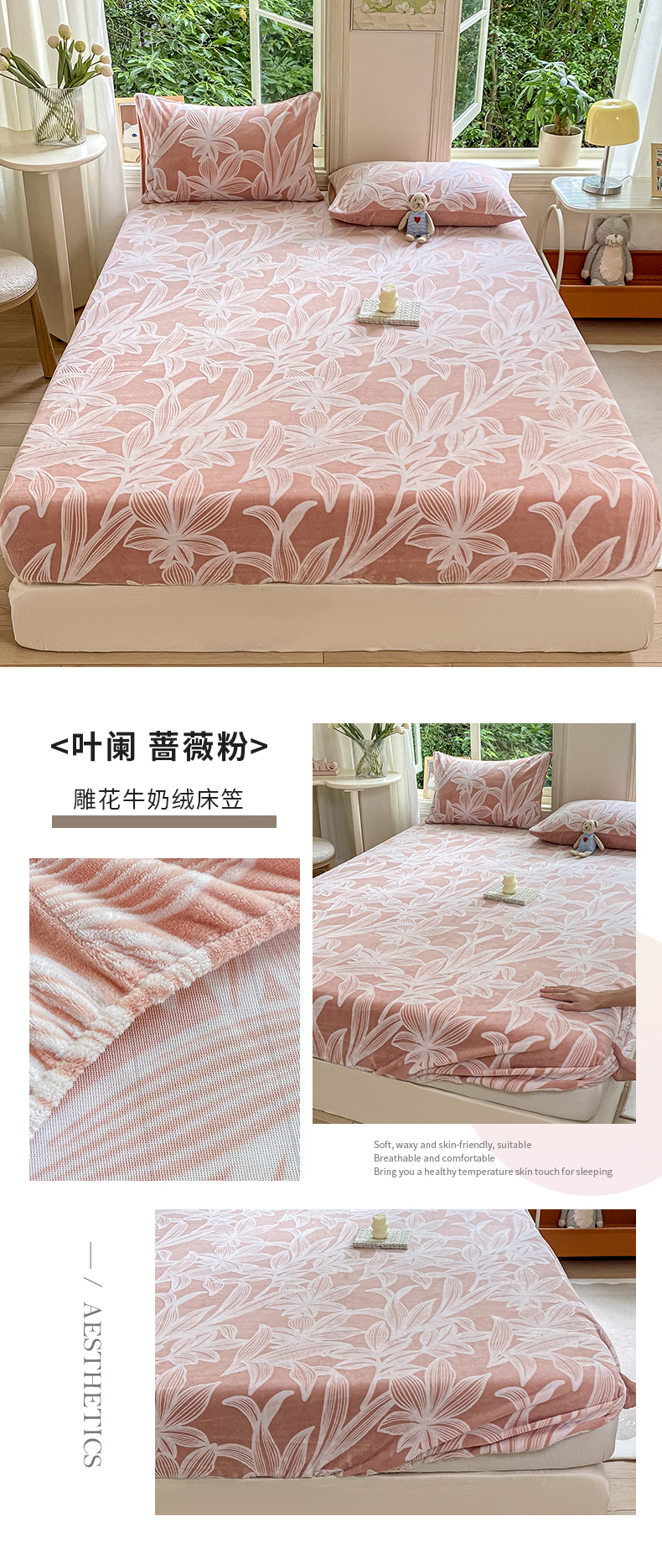 • 91家纺网 家纺一手货源 找家纺 大境 2024新款A类雕花绒牛奶绒床笠三件套单床笠宝宝绒婴儿绒 叶阑 蔷薇粉
