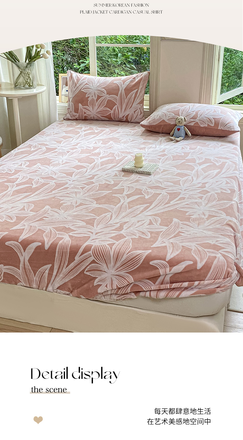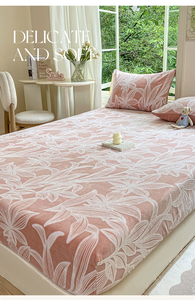 大境 2024新款A类雕花绒牛奶绒床笠三件套单床笠宝宝绒婴儿绒 叶阑 蔷薇粉