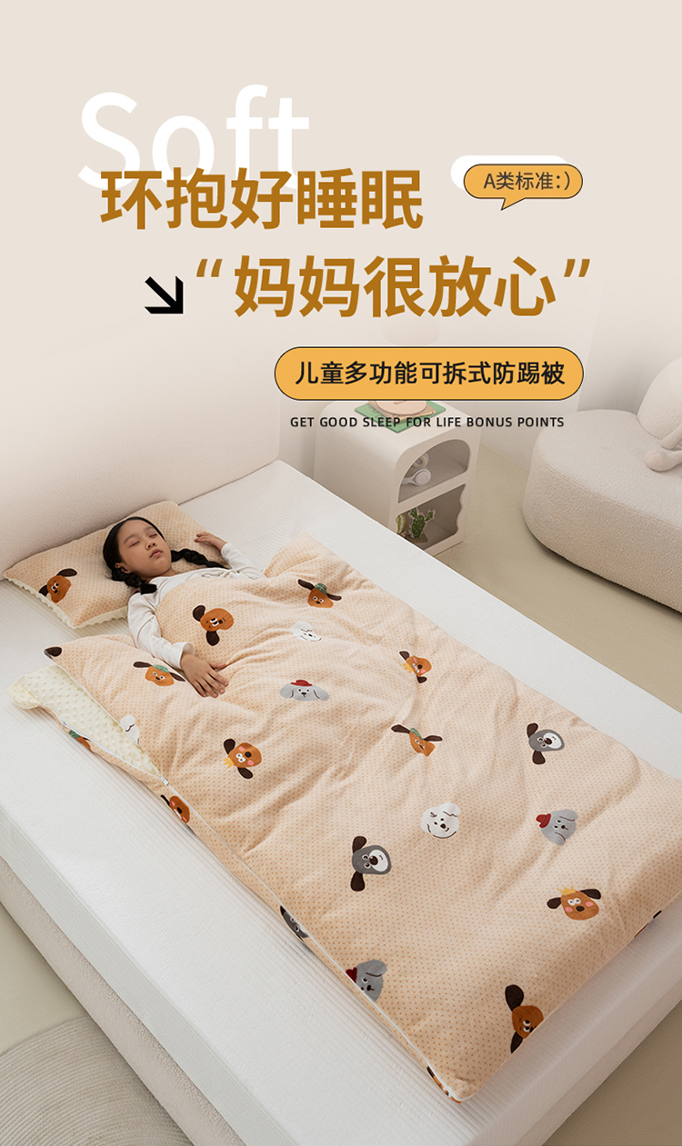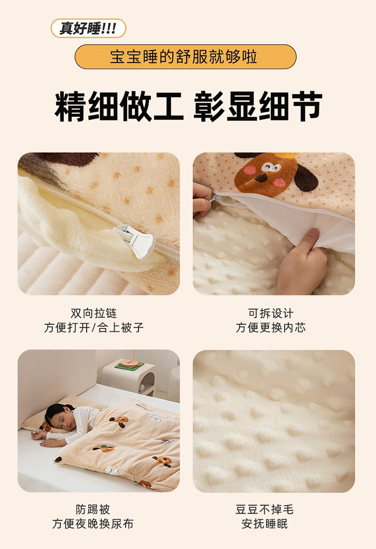 • 91家纺网 家纺一手货源 找家纺 艾佳宝贝 2024牛奶绒豆豆绒可拆式多功能防踢被 防踢被-汪汪家族