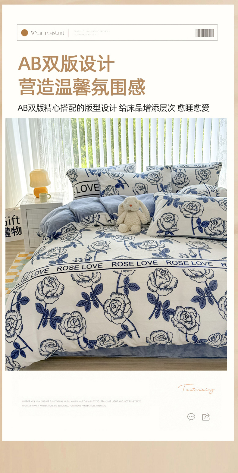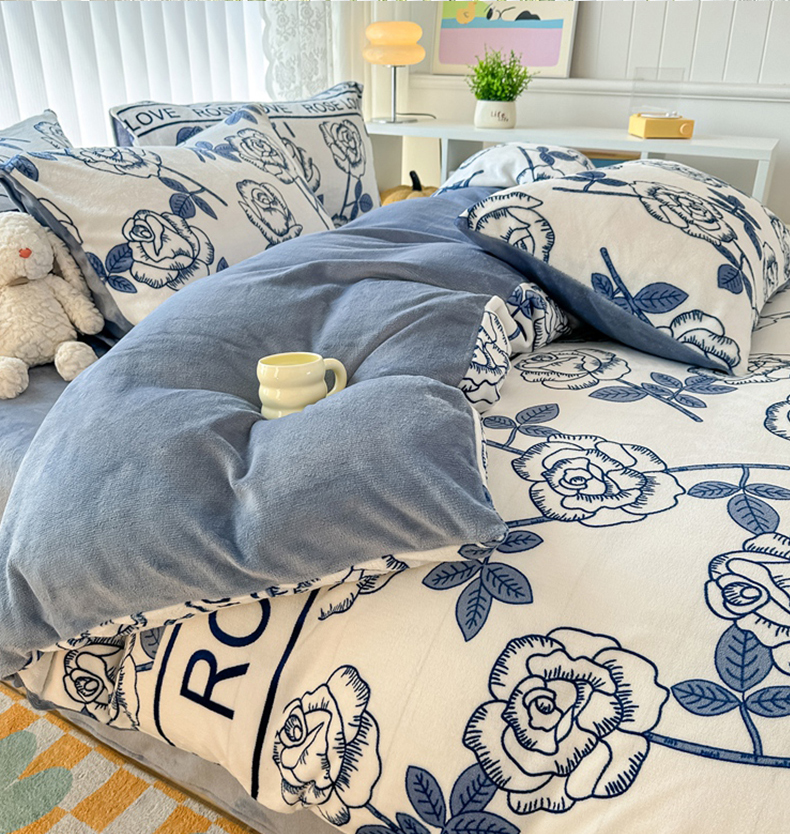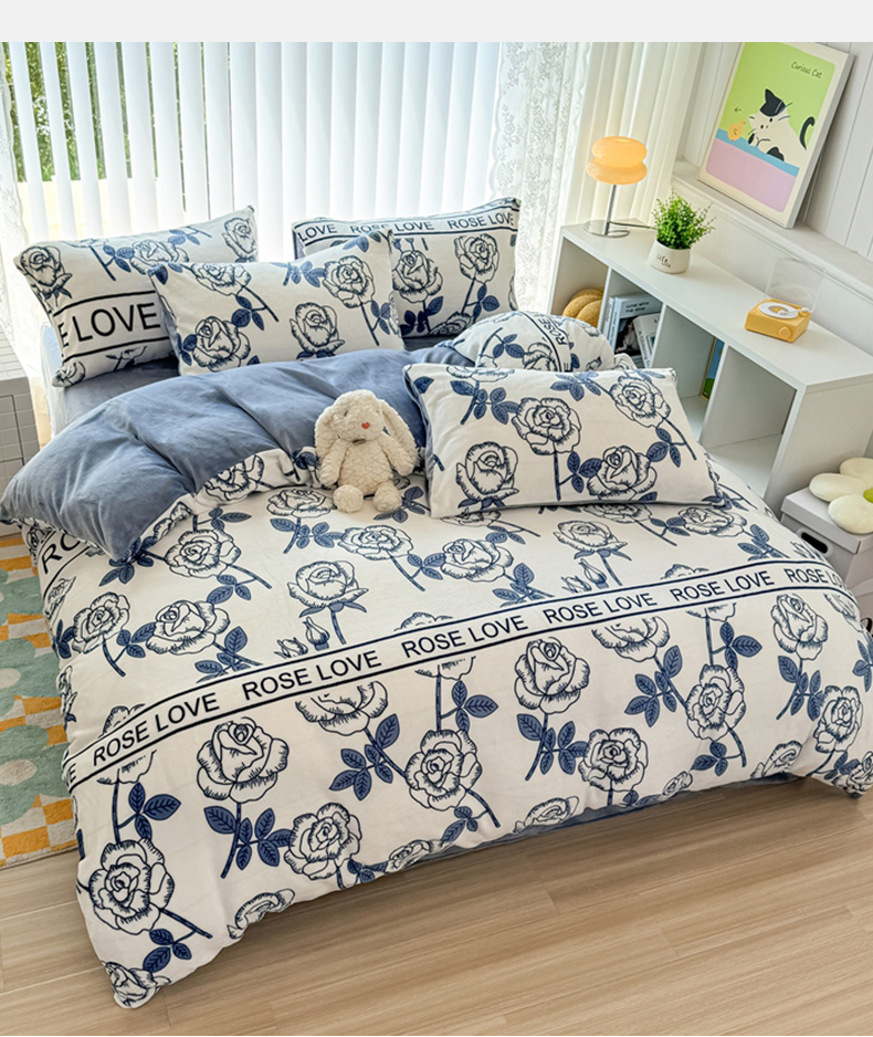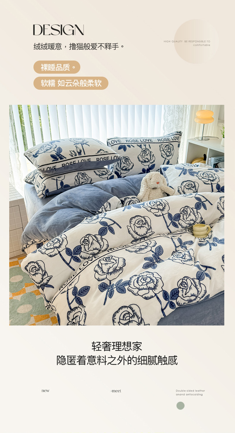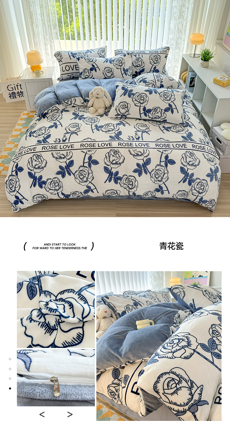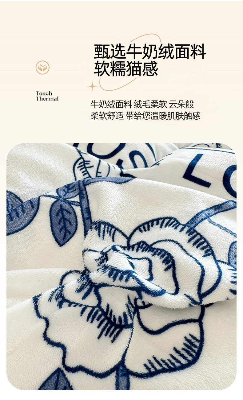 商品名称:觅妮家纺 2025新款全消光200g高克重秋冬加厚印花牛奶绒单被套 青花瓷