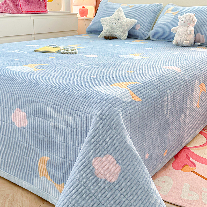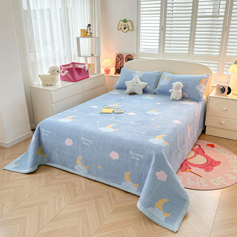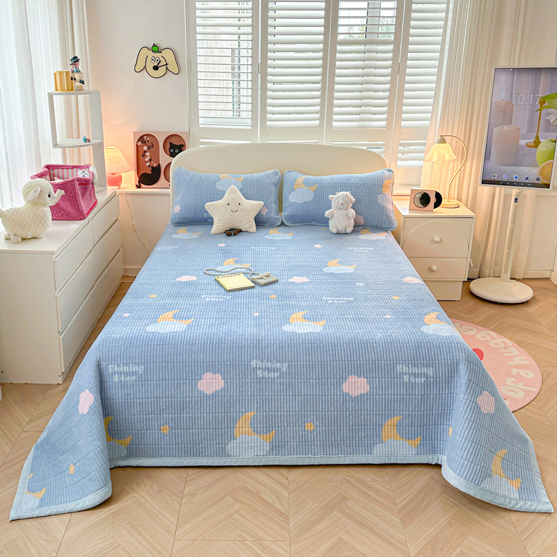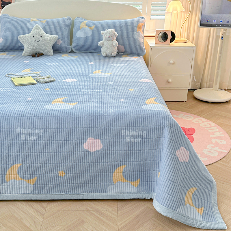 梵朴 2024新款牛奶绒直角包边床盖 星星月亮