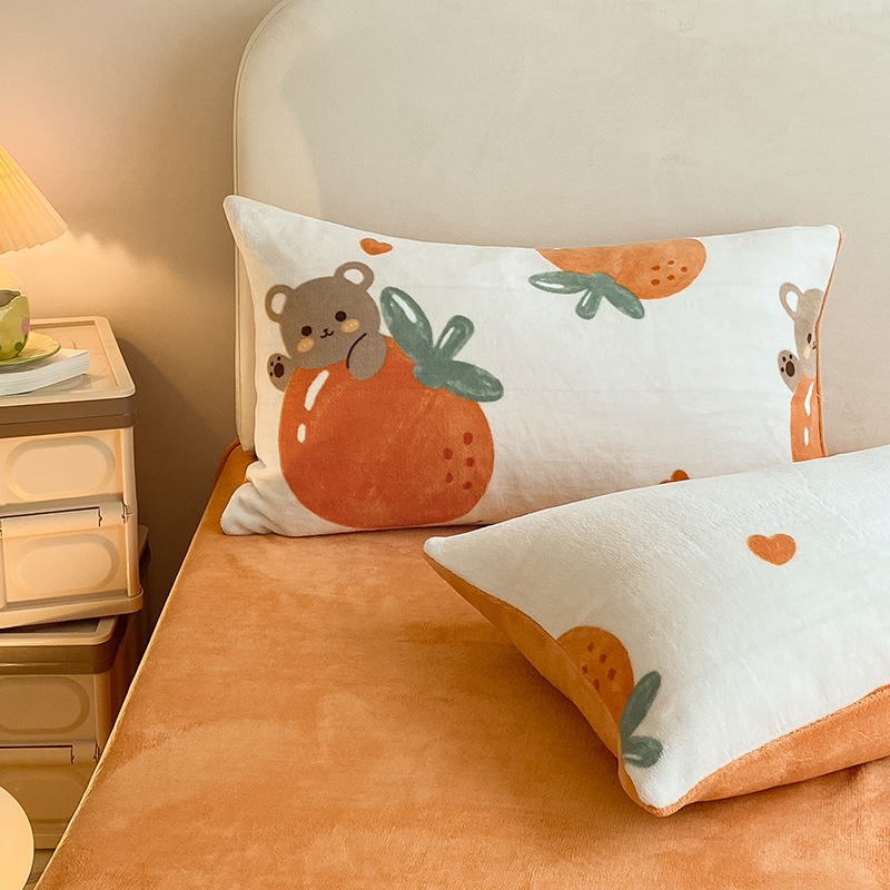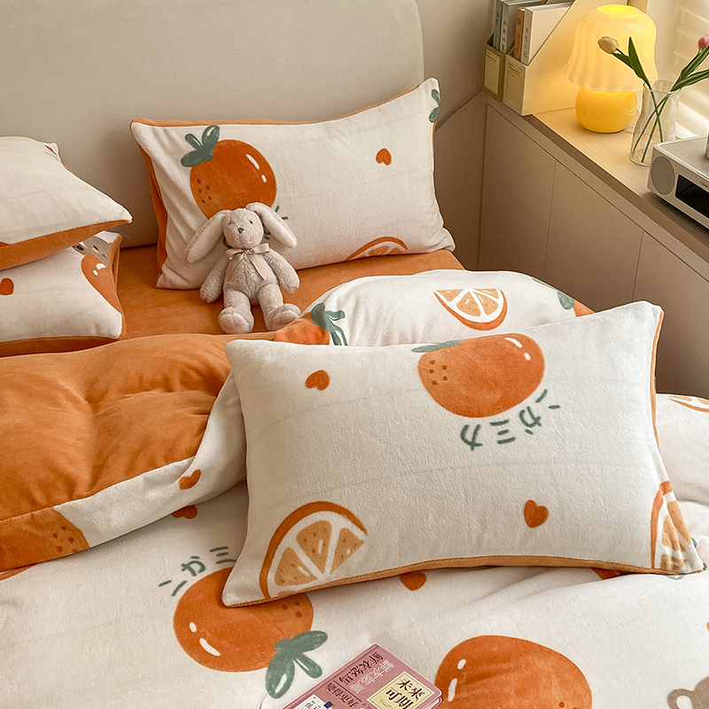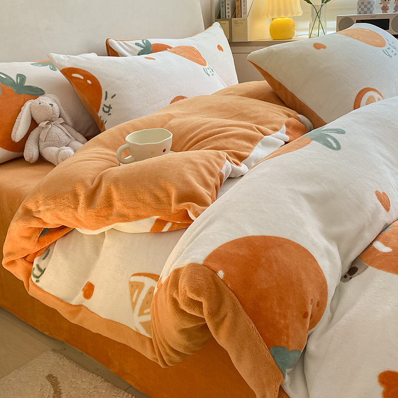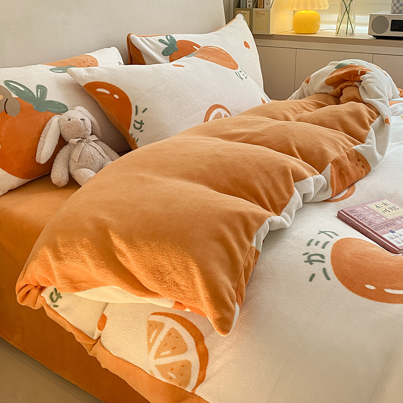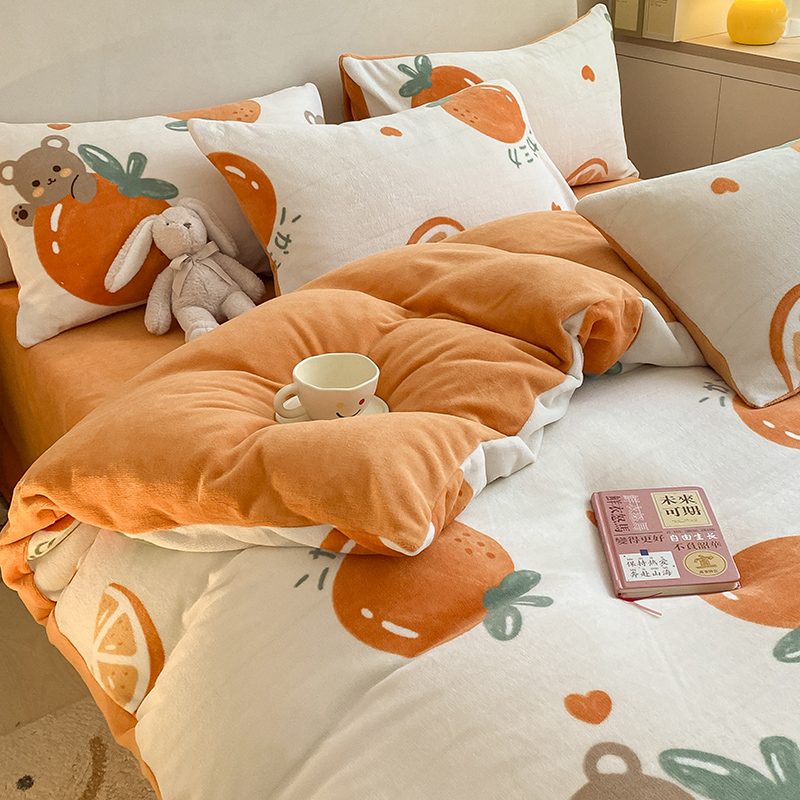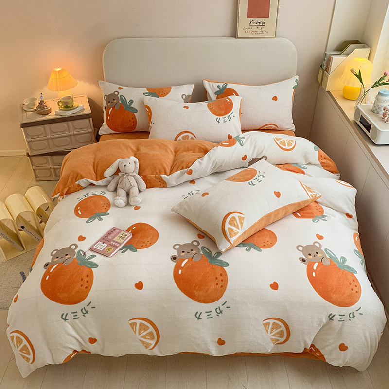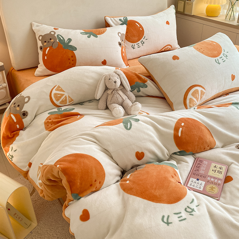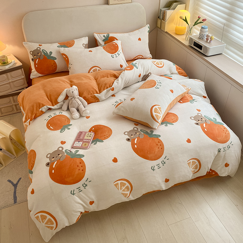 沐辰 2024新款高克重牛奶绒印花四件套 橘子熊
