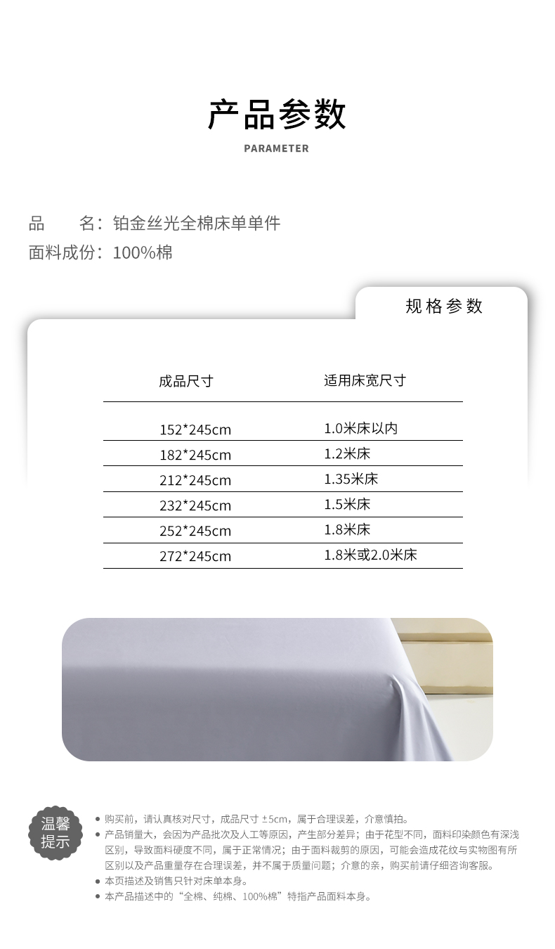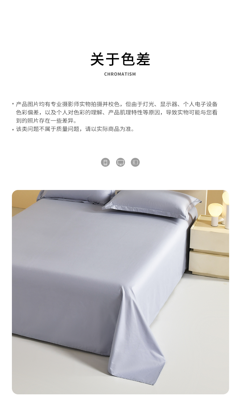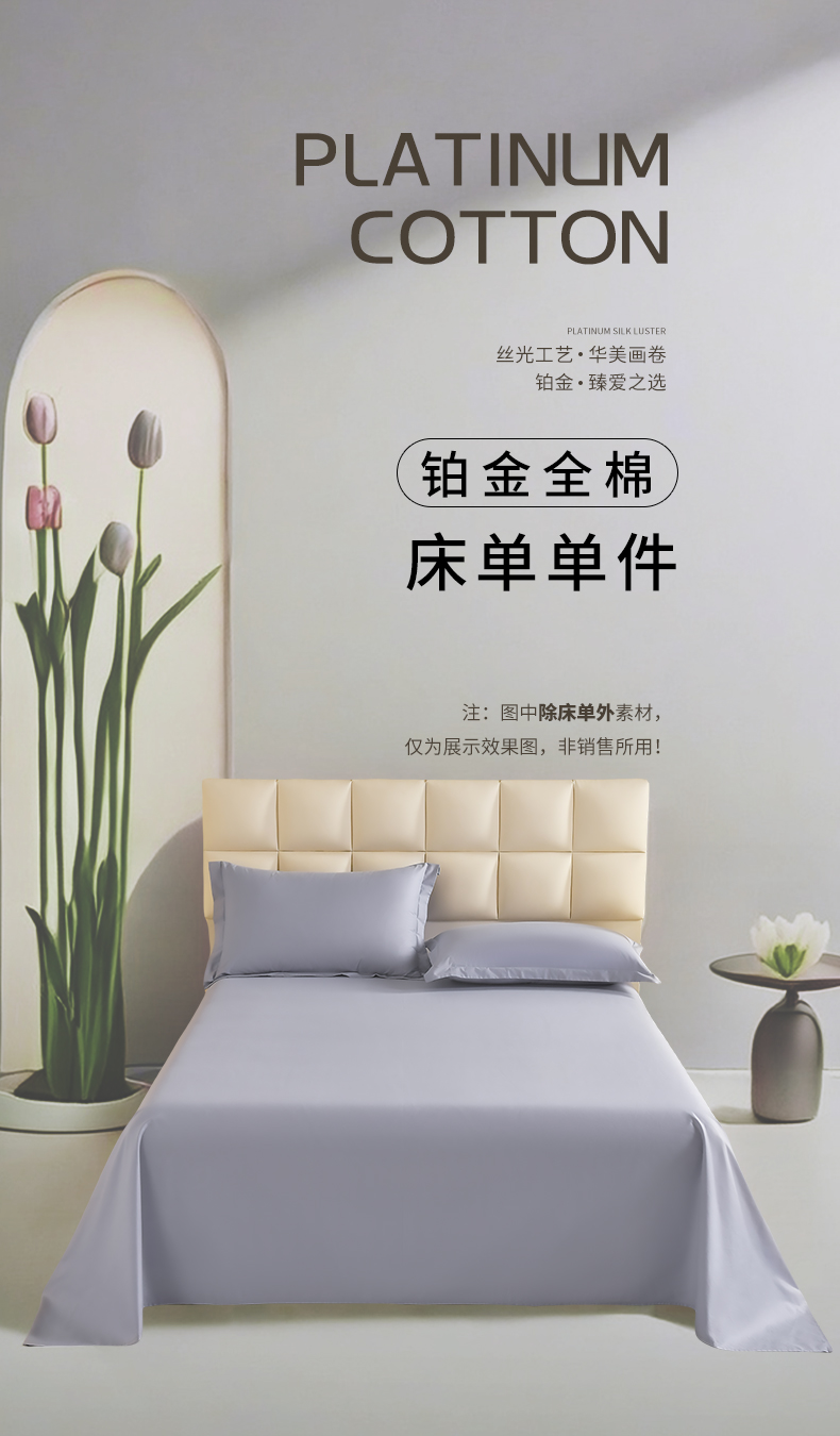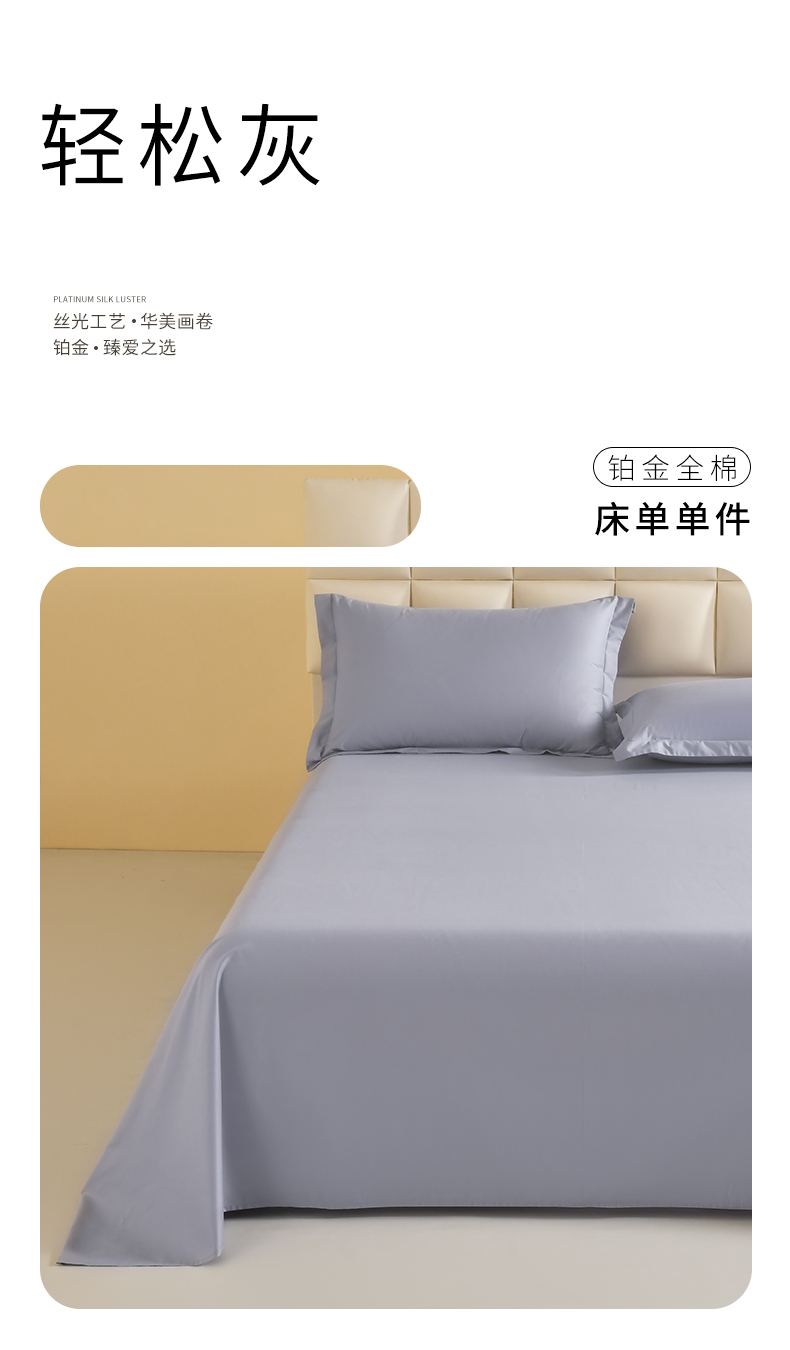 商品名称:元元被芯 2025款纯色全丝光-全精梳高密纺-铂金A类全棉单床单 轻松灰