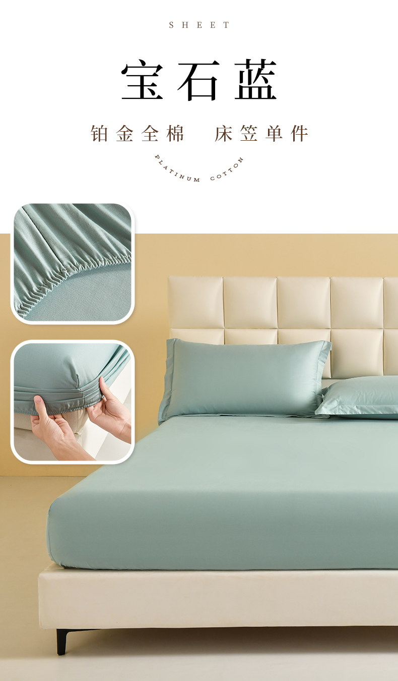 • 91家纺网 家纺一手货源 找家纺 元元被芯 2025款纯色全丝光-全精梳高密纺-铂金A类全棉单床笠 宝石蓝