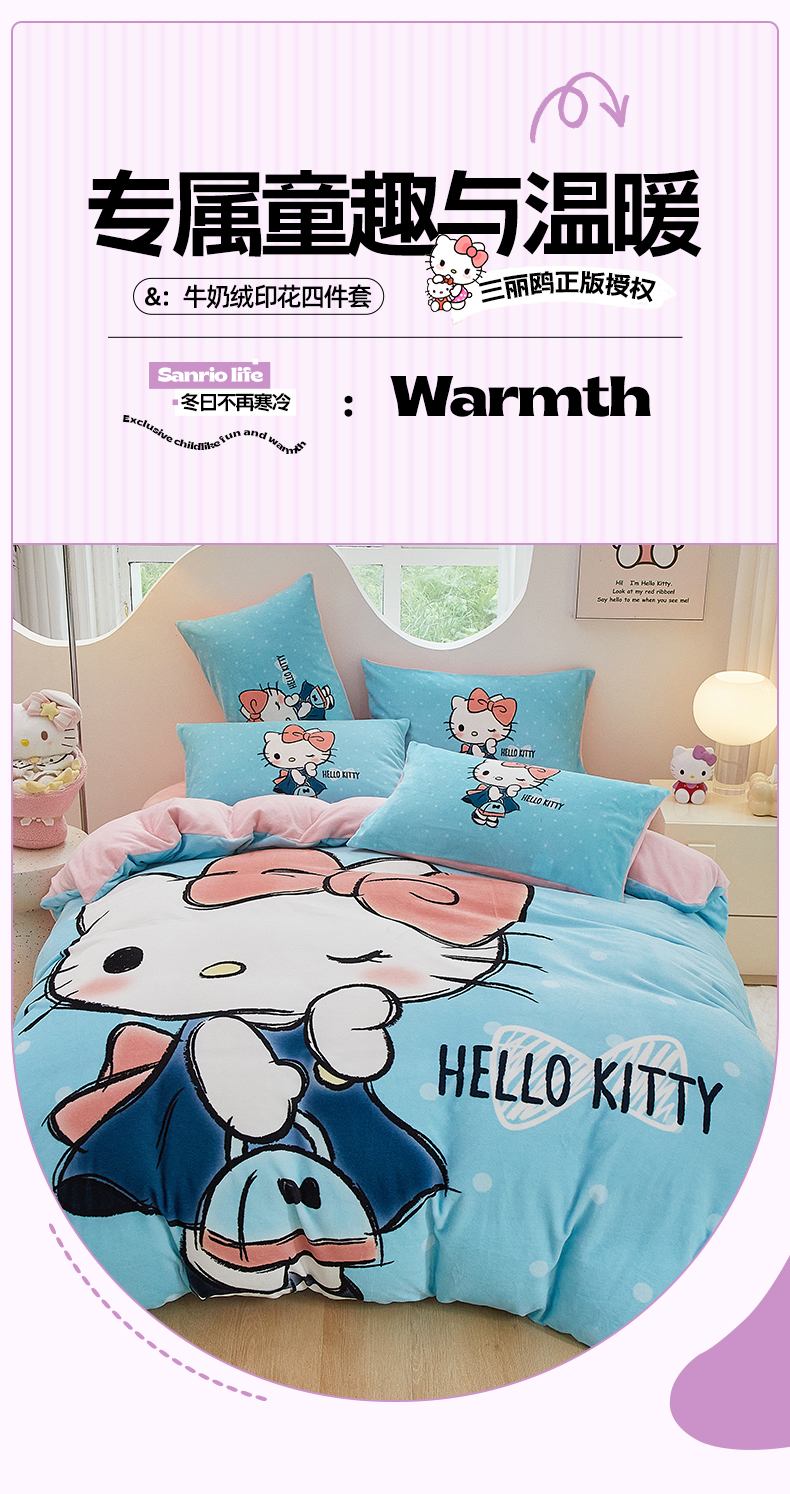 当前位置: 91家纺网 > 商品网购 > 床品套件 > 四件套 > 牛奶绒四件套 > 蘭菲家纺 2024新款牛奶绒卡通三丽鸥四件套 摩卡蓝