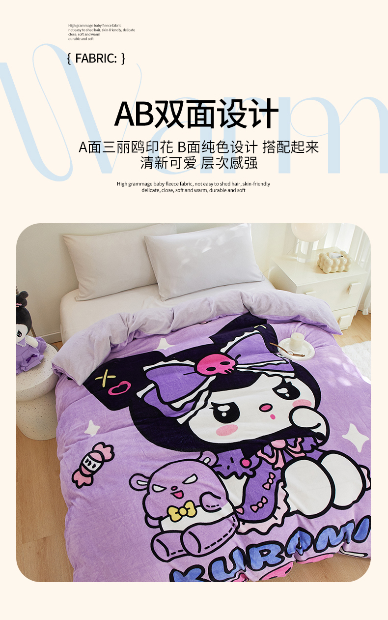 蘭菲家纺 2024新款牛奶绒卡通三丽鸥单品被套 绒小库