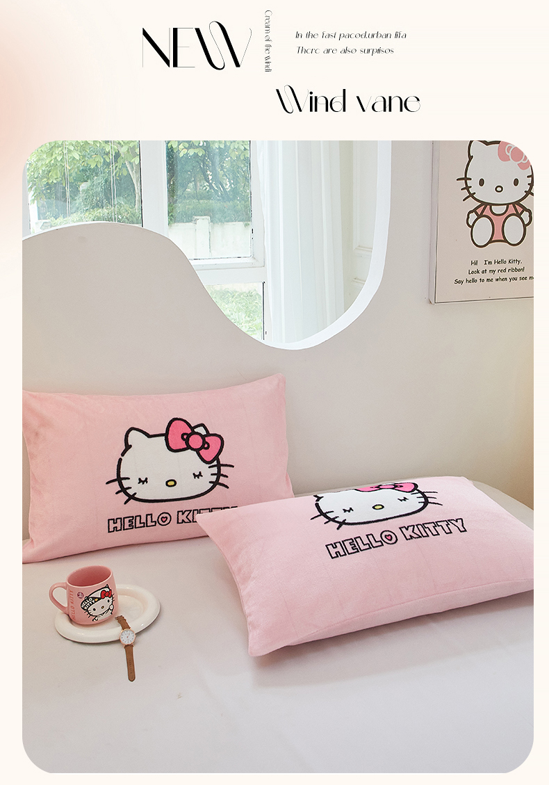 蘭菲家纺 2024新款牛奶绒卡通三丽鸥单品枕套 粉系