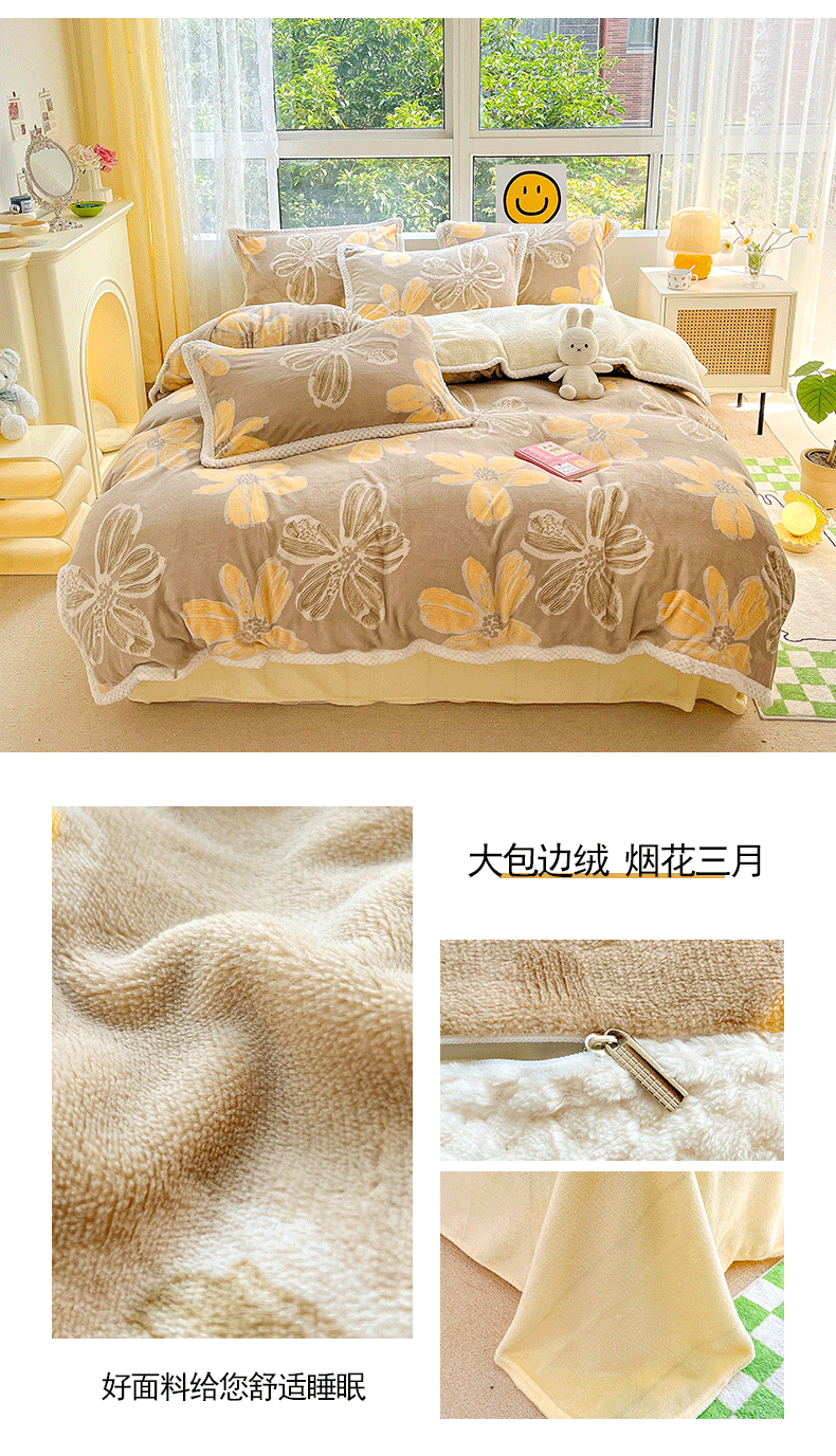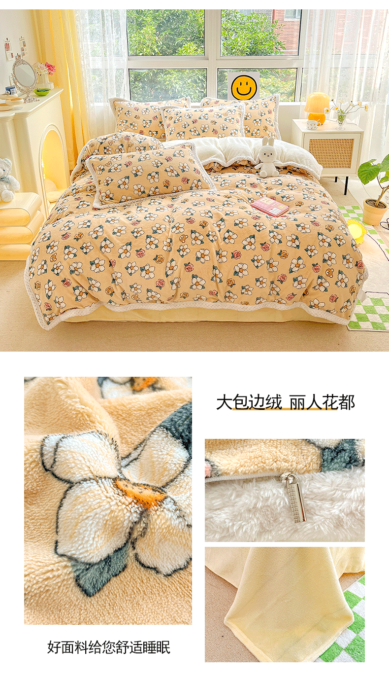 (总)琪格格纺织 2025新款A牛奶绒B兔兔绒保暖印花四件套,大包边绒春花浪漫,大包边绒粉小格,大包边绒海盐草莓,大包边绒几何时尚,大包边绒菱形空间,大包边绒沁香-黄,大包边绒微雨,大包边绒小黄花,大包边绒小兰花,大包边绒烟花三月,牛奶绒格子彩虹,牛奶绒泡泡蛙一,牛奶绒泡泡蛙二