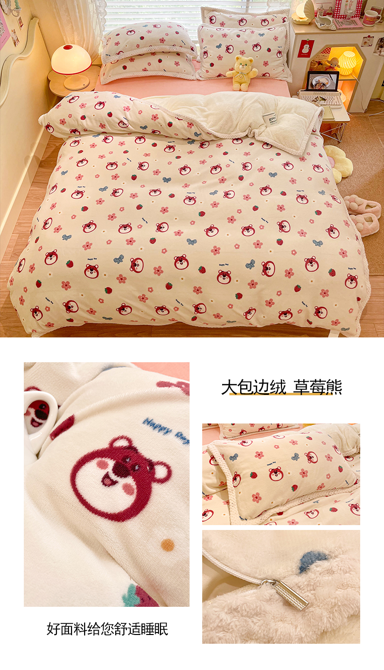 (总)琪格格纺织 2024新款印花A牛奶绒B兔兔绒大包边四件套