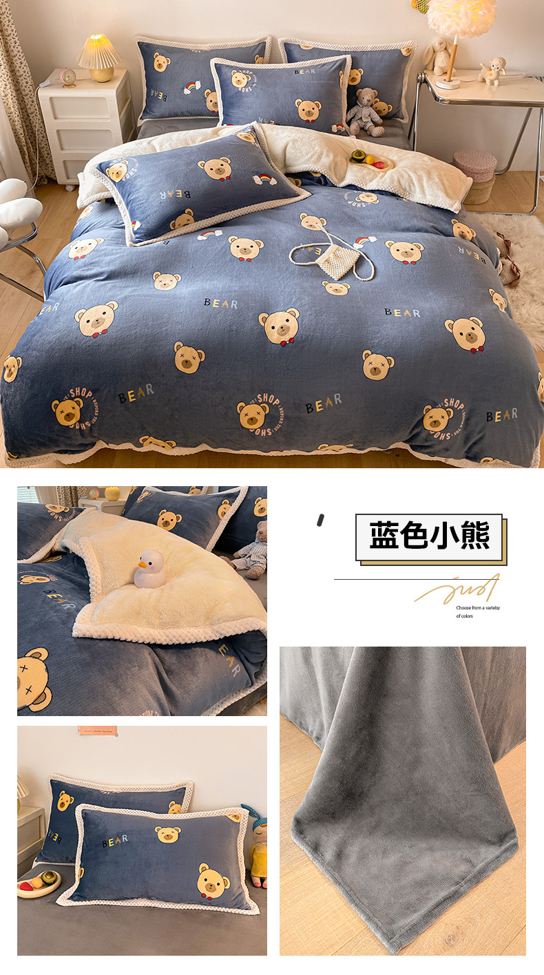 商品名称:(总)琪格格纺织 2024新款印花A牛奶绒B兔兔绒大包边四件套