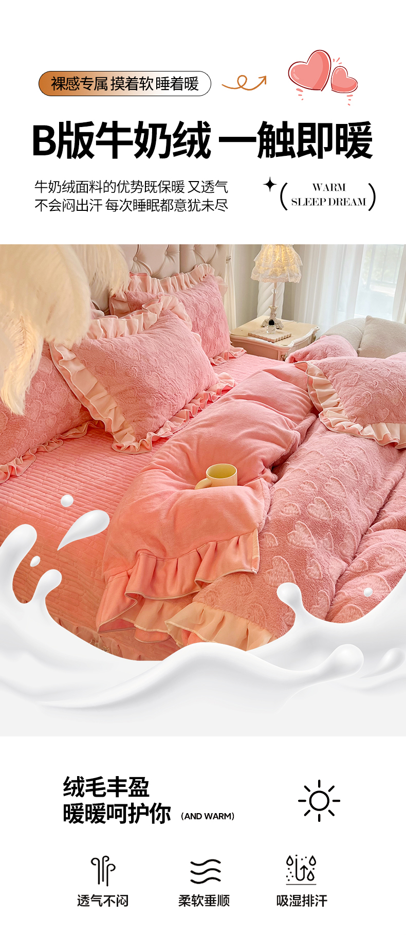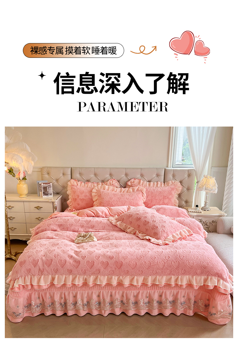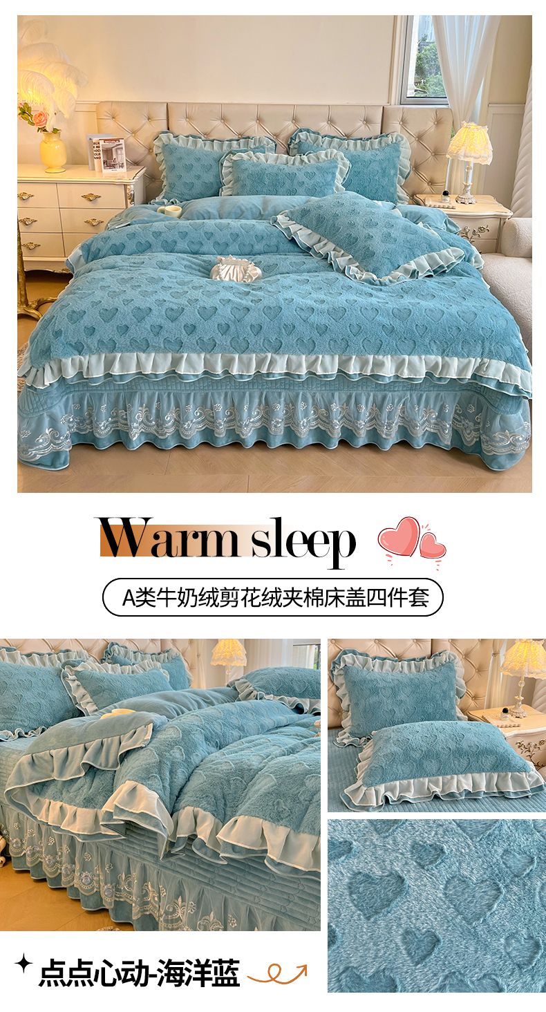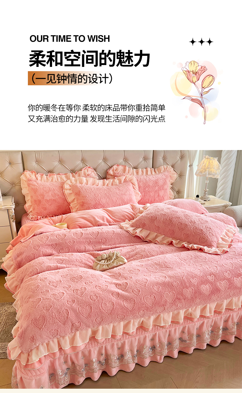 (总)宜凡家纺 2025新款兔绒提花牛奶绒夹棉床裙四件套,爱心 少女粉,爱心 粉紫,爱心 驼色,蝶舞 大红,蝶舞 米色,蝶舞 浅紫,蝶舞 玉色,简爱 苍青,简爱 豆沙紫,简爱 玉色,樱桃 苍青,樱桃 豆沙紫,樱桃 奶油白