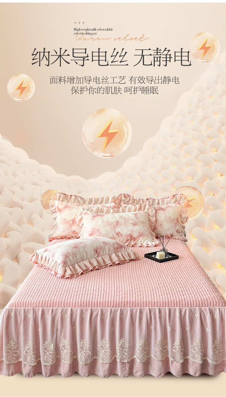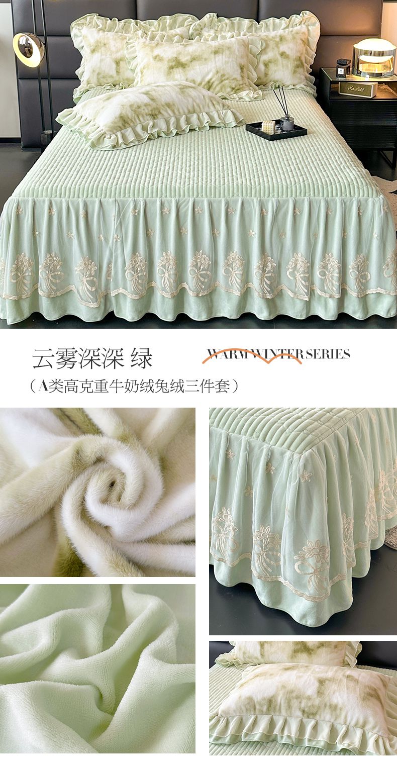 当前位置: 91家纺网 > 商品网购 > 床品套件 > 三件套 > 宜凡家纺 2024新款高克重牛奶绒兔绒床裙三件套 云雾深深 咖