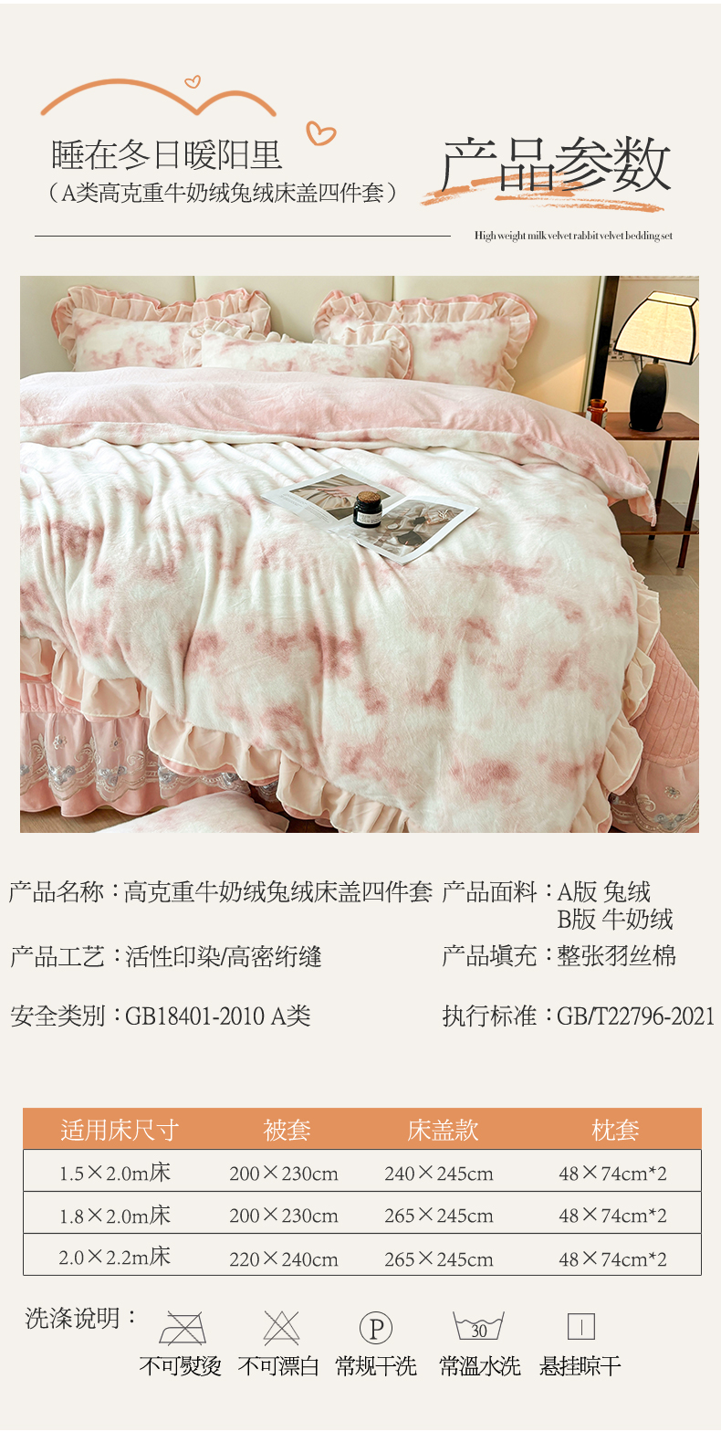 (总)宜凡家纺 2025新款兔绒提花牛奶绒夹棉床裙四件套,爱心 少女粉,爱心 粉紫,爱心 驼色,蝶舞 大红,蝶舞 米色,蝶舞 浅紫,蝶舞 玉色,简爱 苍青,简爱 豆沙紫,简爱 玉色,樱桃 苍青,樱桃 豆沙紫,樱桃 奶油白