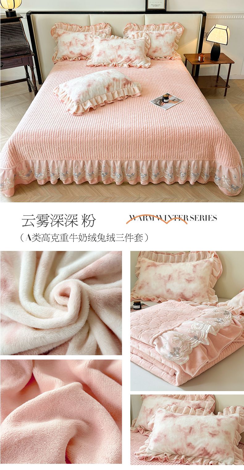 (总)宜凡家纺 2025新款兔绒提花牛奶绒夹棉床裙四件套,爱心 少女粉,爱心 粉紫,爱心 驼色,蝶舞 大红,蝶舞 米色,蝶舞 浅紫,蝶舞 玉色,简爱 苍青,简爱 豆沙紫,简爱 玉色,樱桃 苍青,樱桃 豆沙紫,樱桃 奶油白