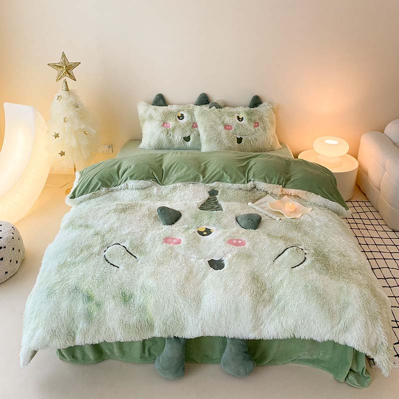 商品名称:嗨购家纺 2024新款水貂绒宝宝绒四件套-小怪兽卡通系列(棚拍图) 涂山彩彩