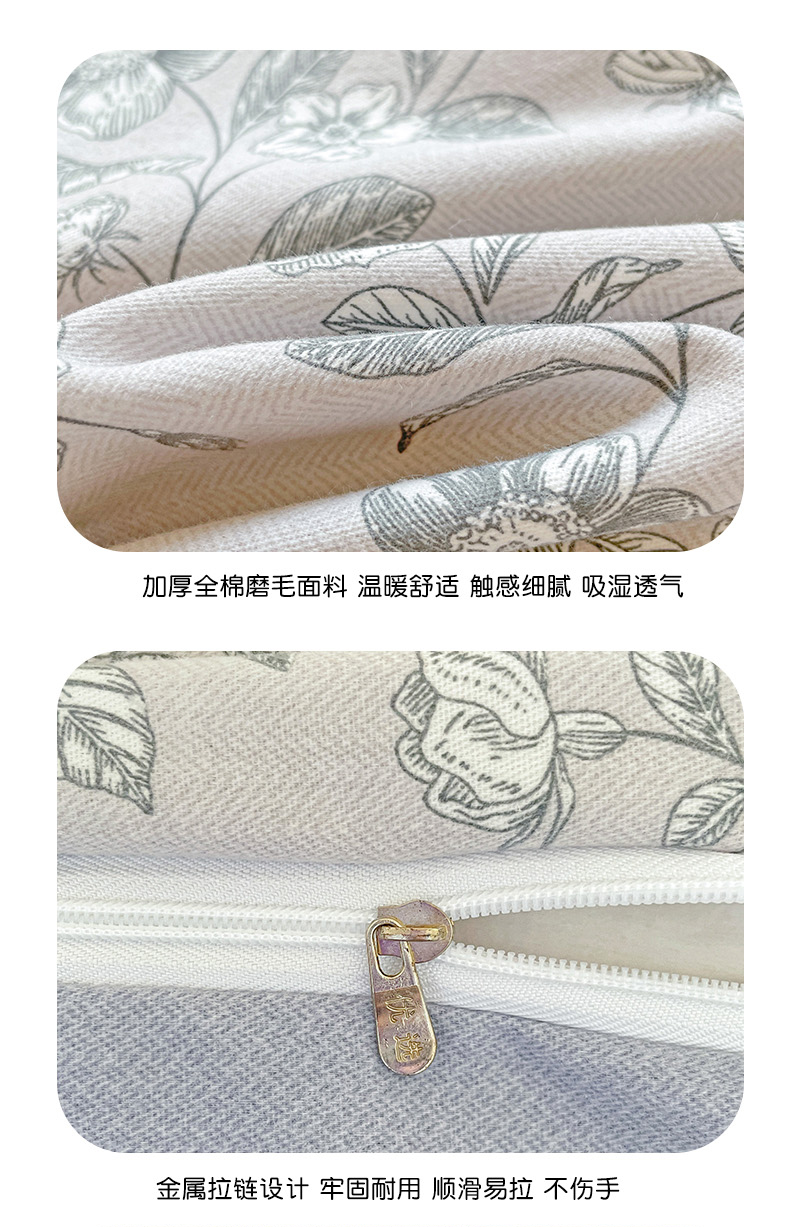 商品名称:暖芯优选 2025新款直播爆款加厚全棉磨毛四件套喷气印花纯棉(一字绣工艺款)学生三件套10月上新 啬园