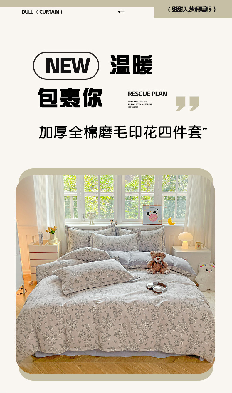 暖芯优选 2025新款直播爆款加厚全棉磨毛四件套喷气印花纯棉(一字绣工艺款)学生三件套10月上新 啬园