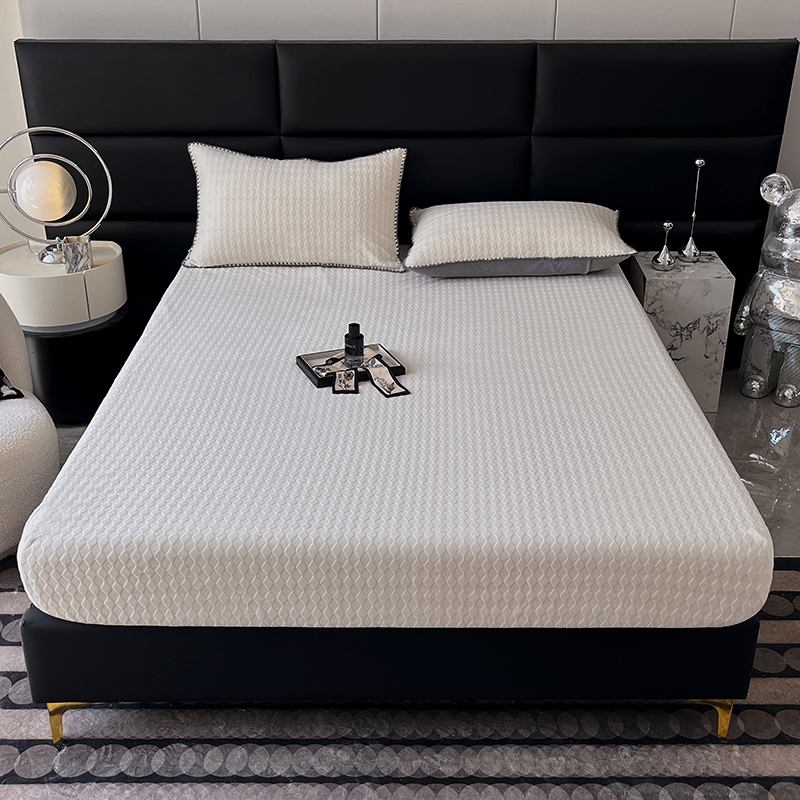 • 91家纺网 家纺一手货源 找家纺 菡宝 2024新款素色烂花床笠 菱形白