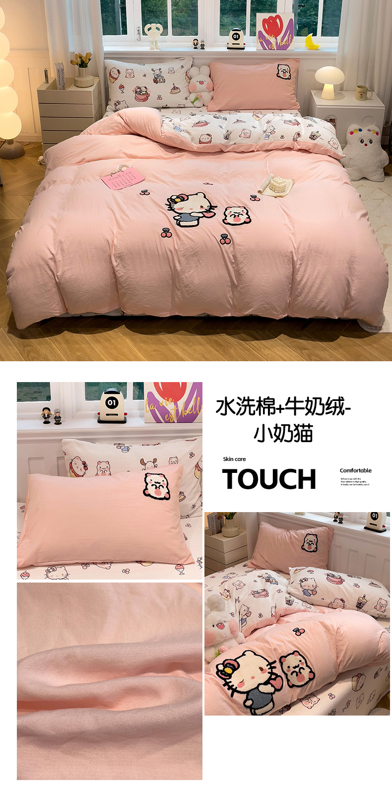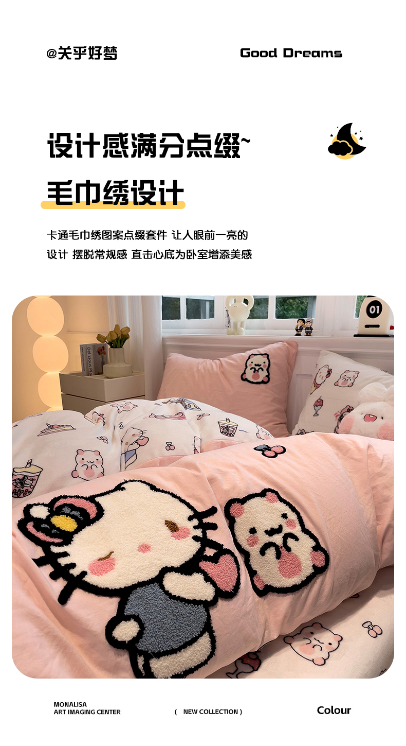 当前位置: 91家纺网 > 商品网购 > 床品套件 > 四件套 > 其它四件套 > 奈颜 2024新款冬季棉+绒毛巾绣四件套A版超柔水洗棉+B版加厚牛奶绒 小奶猫