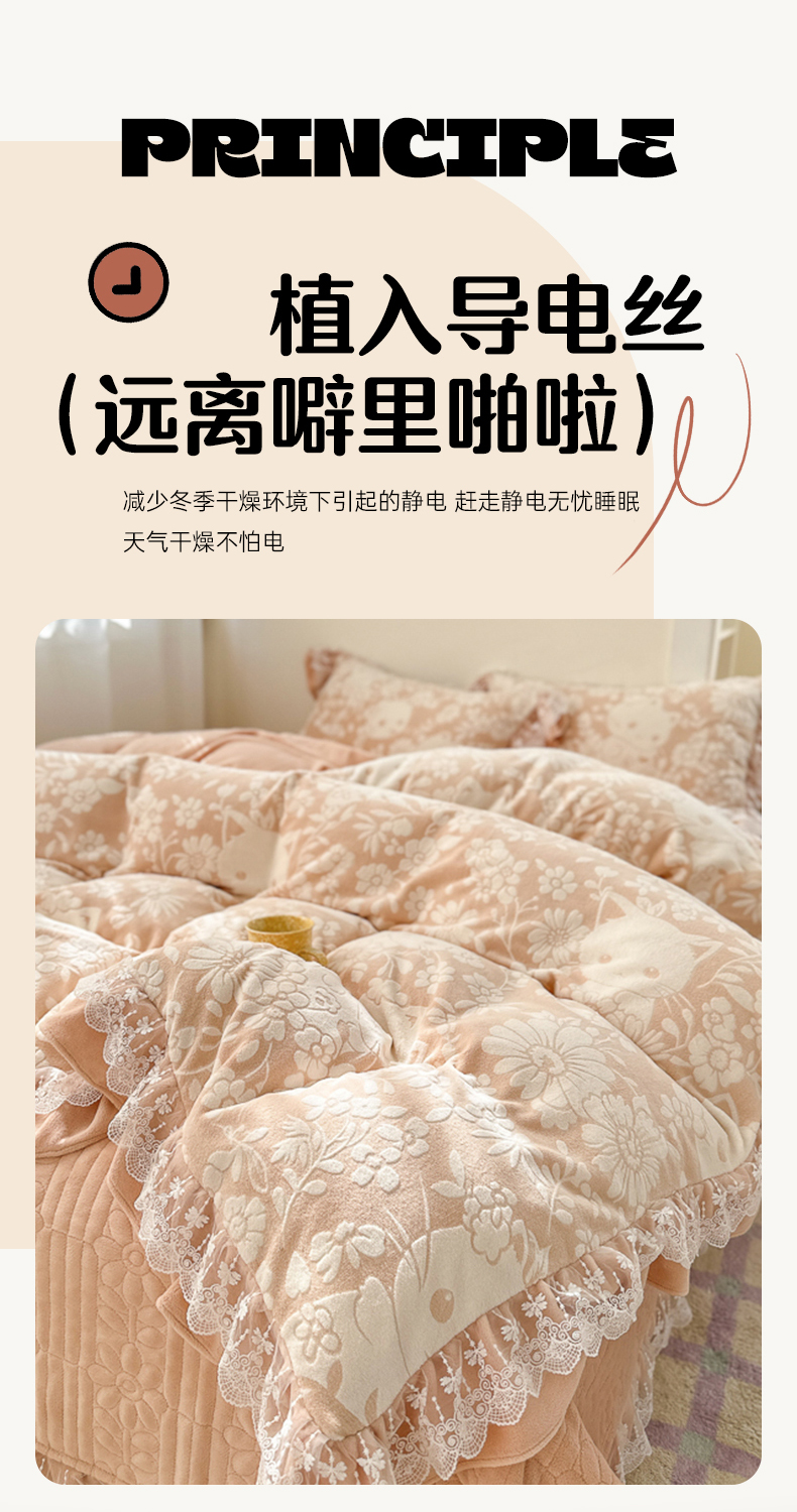 (总)淑女公社家纺 2025秋冬新款纯棉双层纱加韩国绒四件套,花园秘兔 咖,繁花,花园秘兔灰,欢乐熊,萌萌小兔,蘑菇小兔,甜酷女孩 粉,甜酷女孩 咖,甜心宝贝,童趣,熊先生与兔小姐,紫韵
