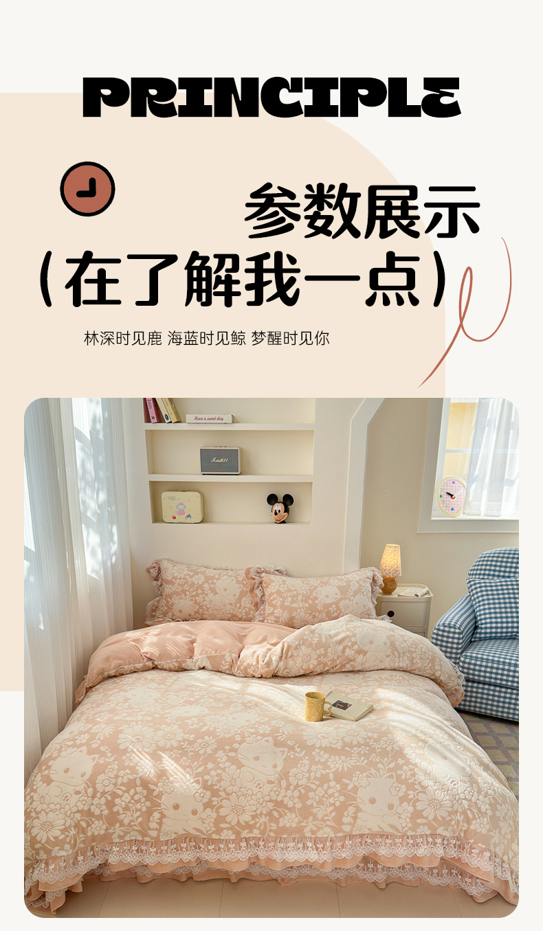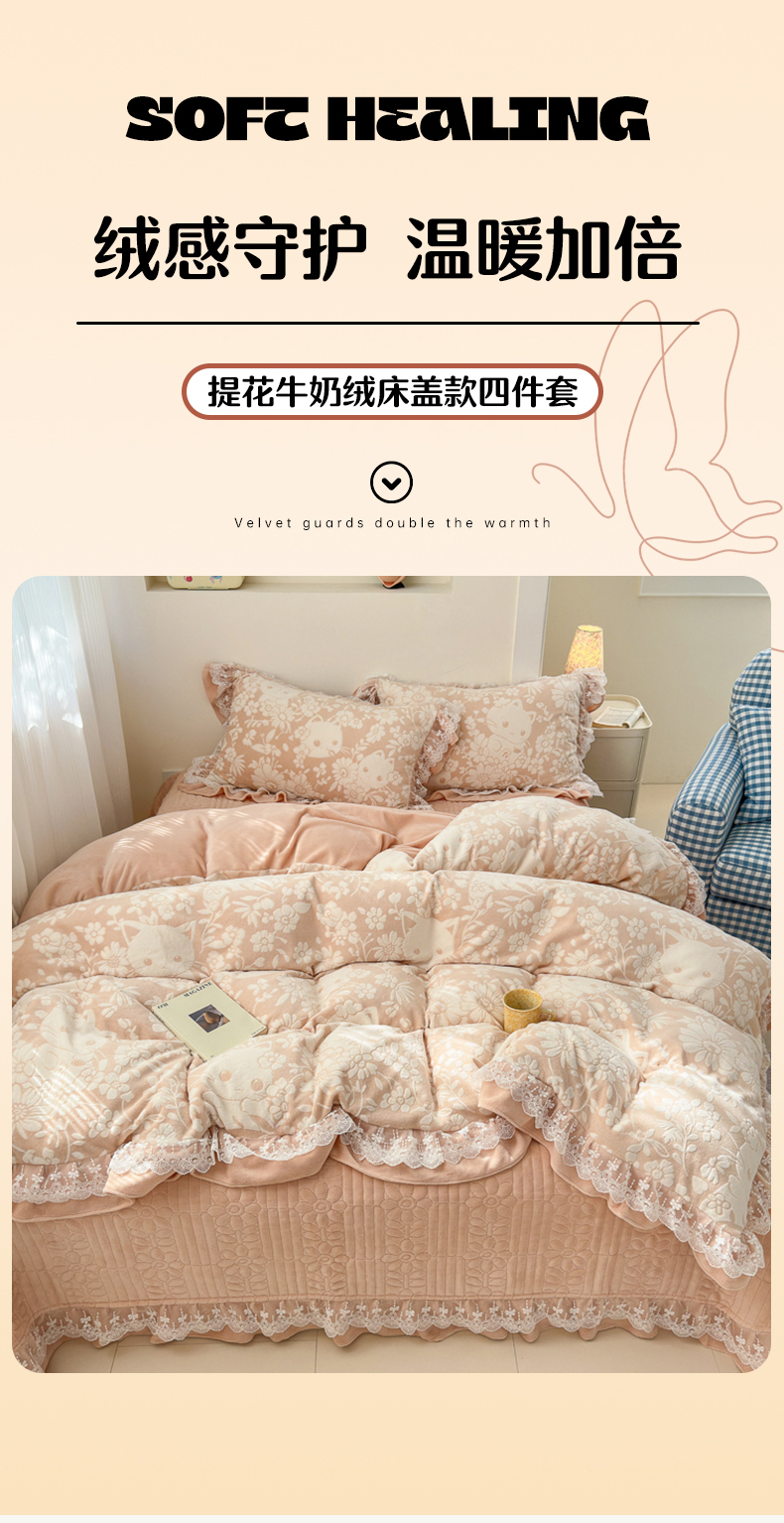 商品名称:淑女公社家纺 2024秋冬新款提花牛奶绒床盖款四件套 可爱猫 玉色
