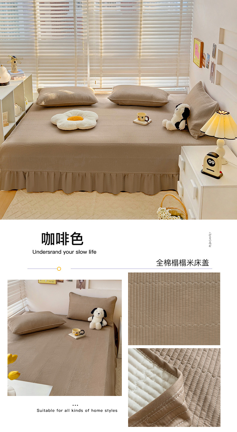羽爱2024新款A类全棉纯色榻榻米床盖咖啡色