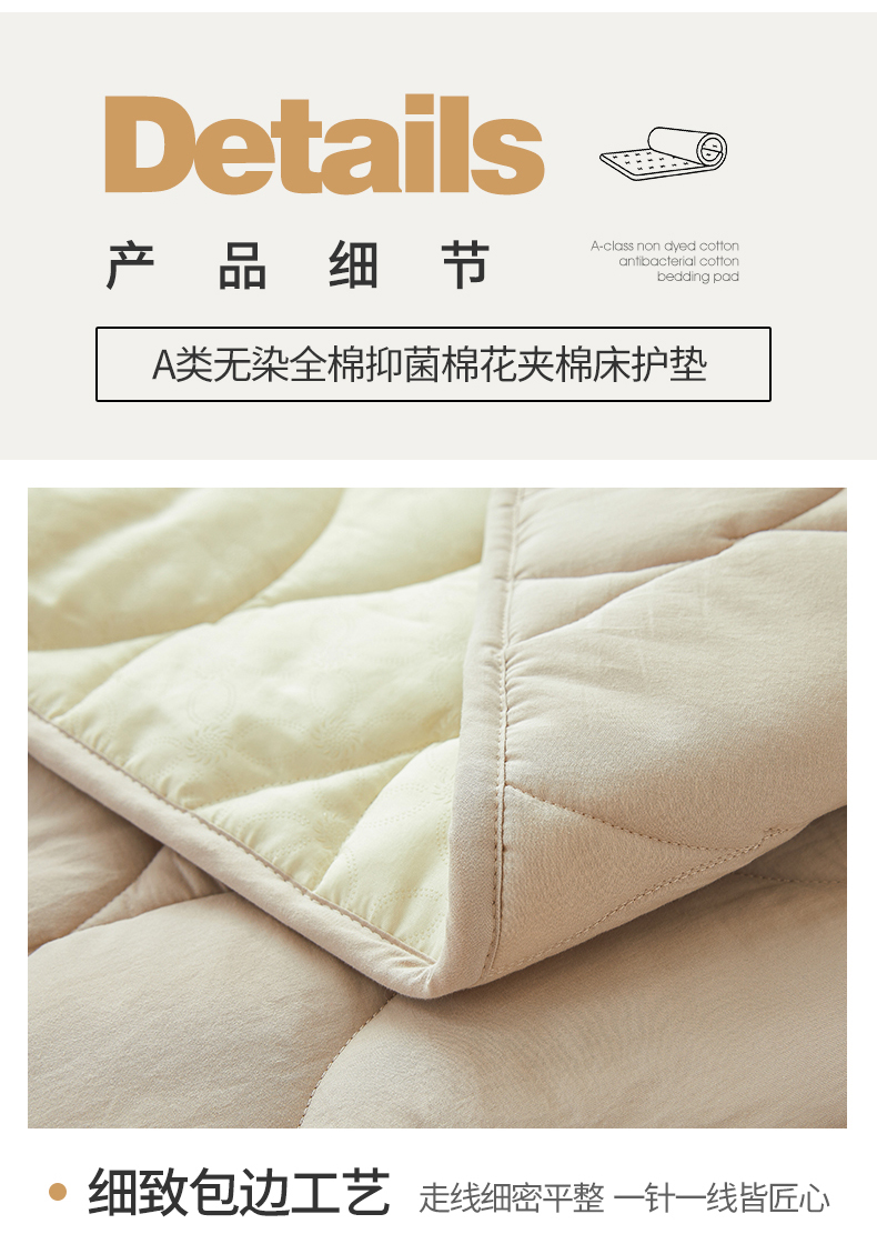当前位置: 91家纺网 > 商品网购 > 床垫/床褥 > 普通床垫 > 3C 新款A类无染全棉抑菌棉花夹棉床护垫 无染-浅卡其