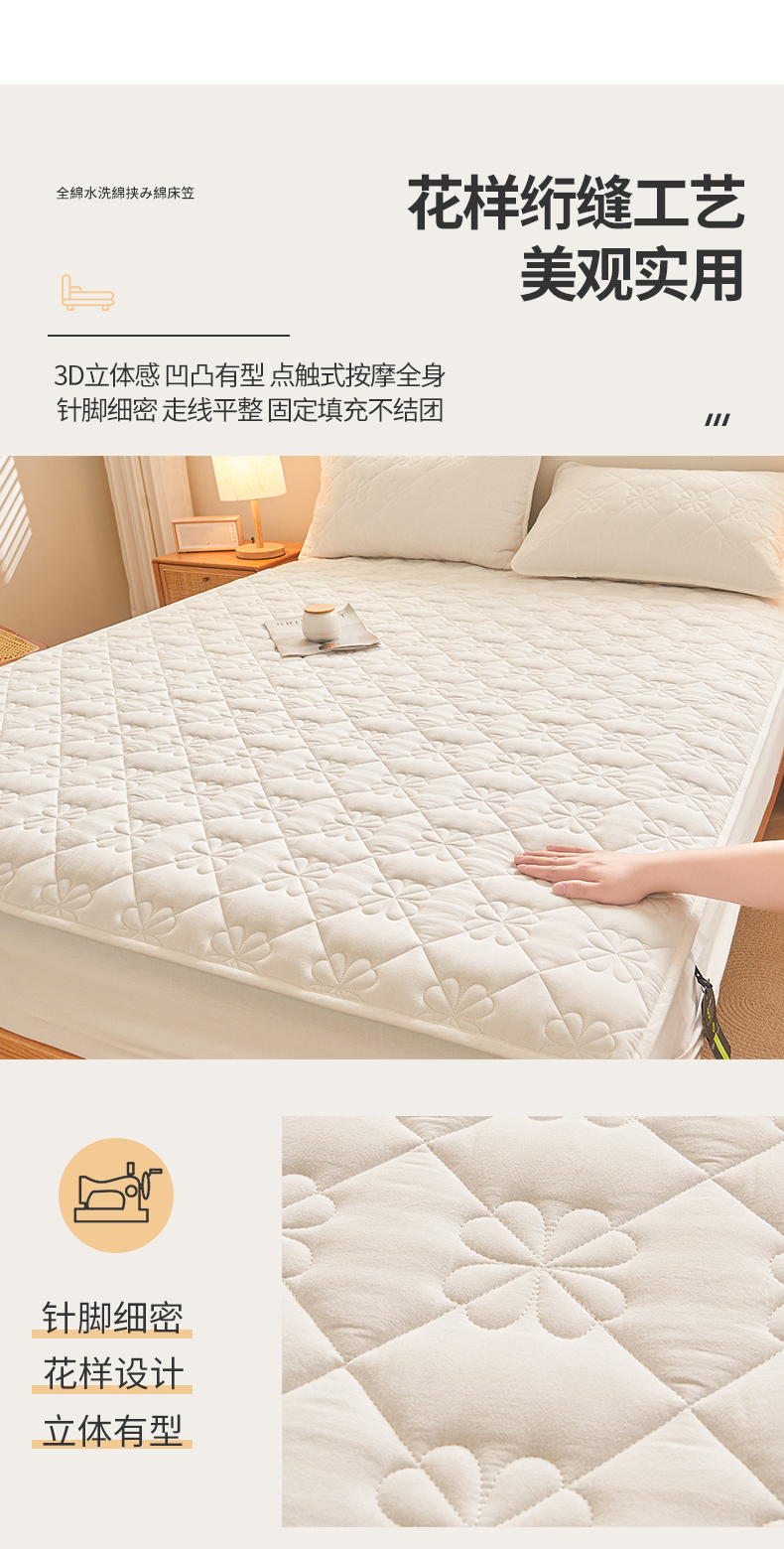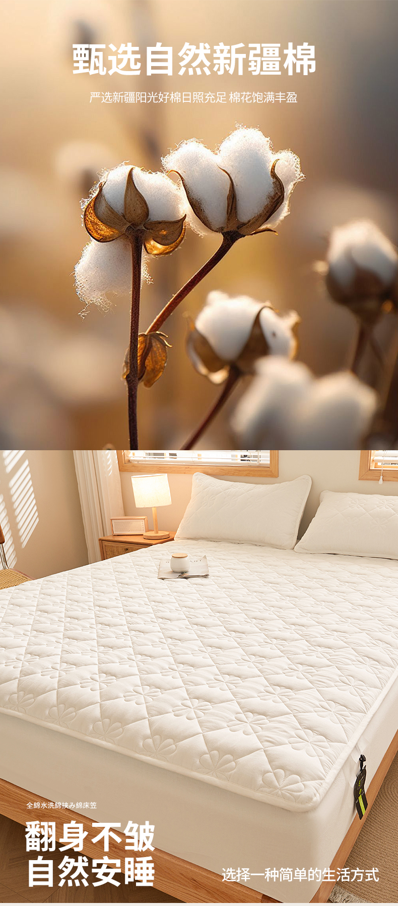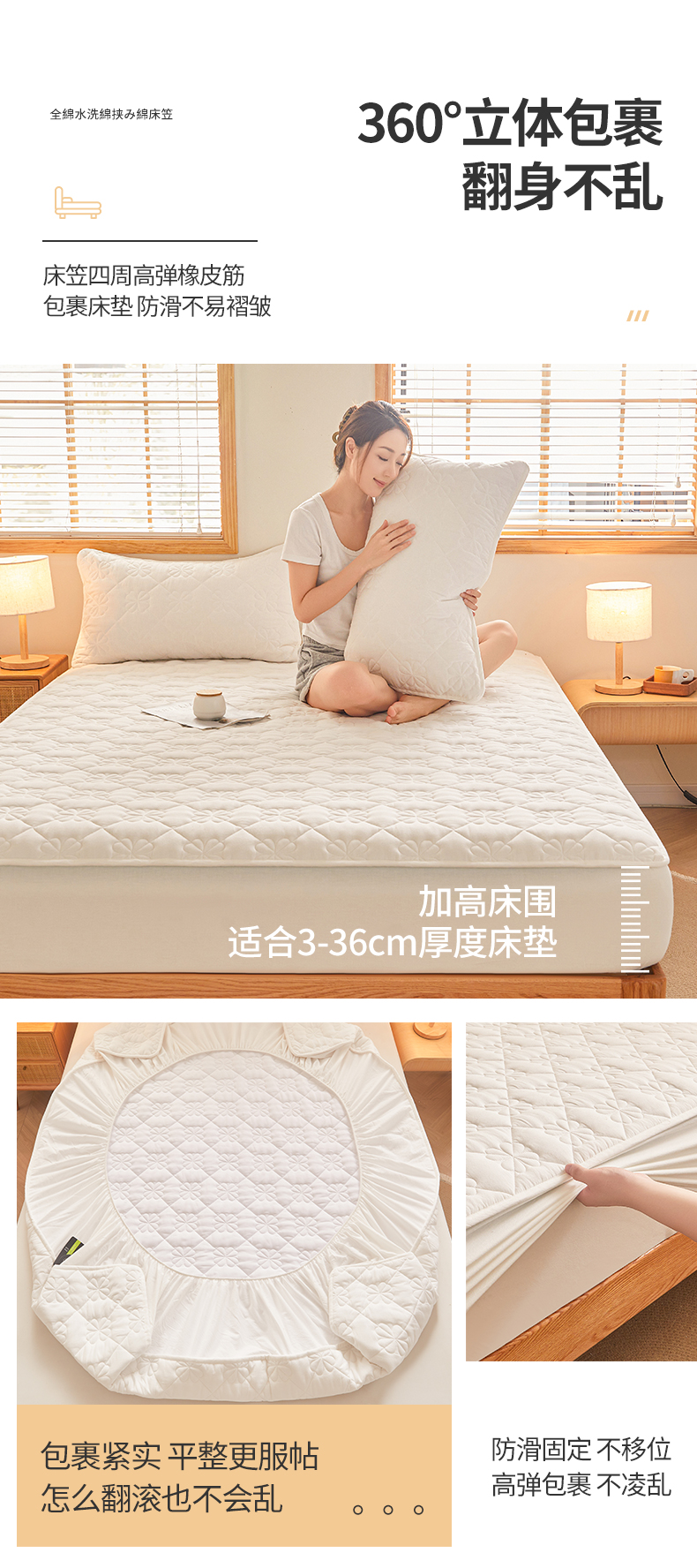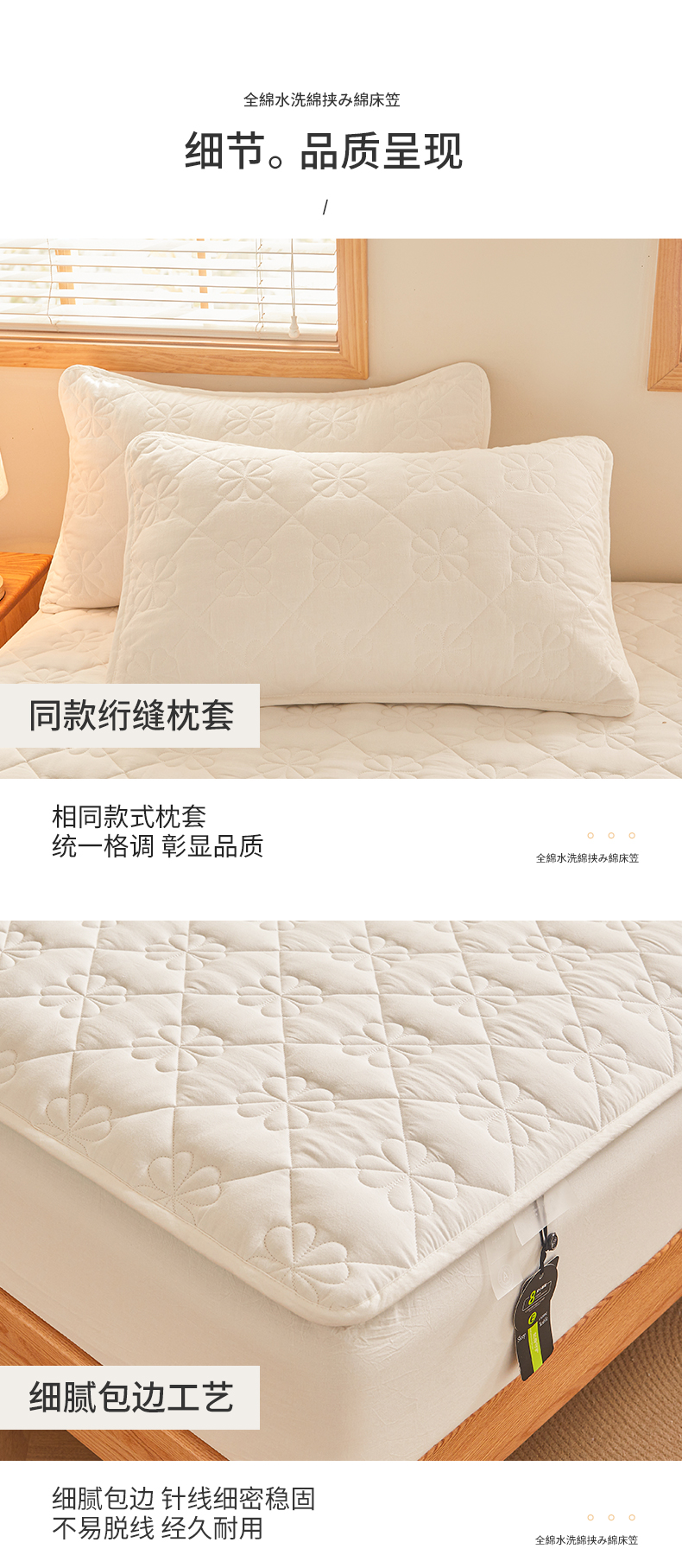 商品名称:3C 2024新款全棉水洗棉夹棉床笠-浅语系列 浅语-云朵白