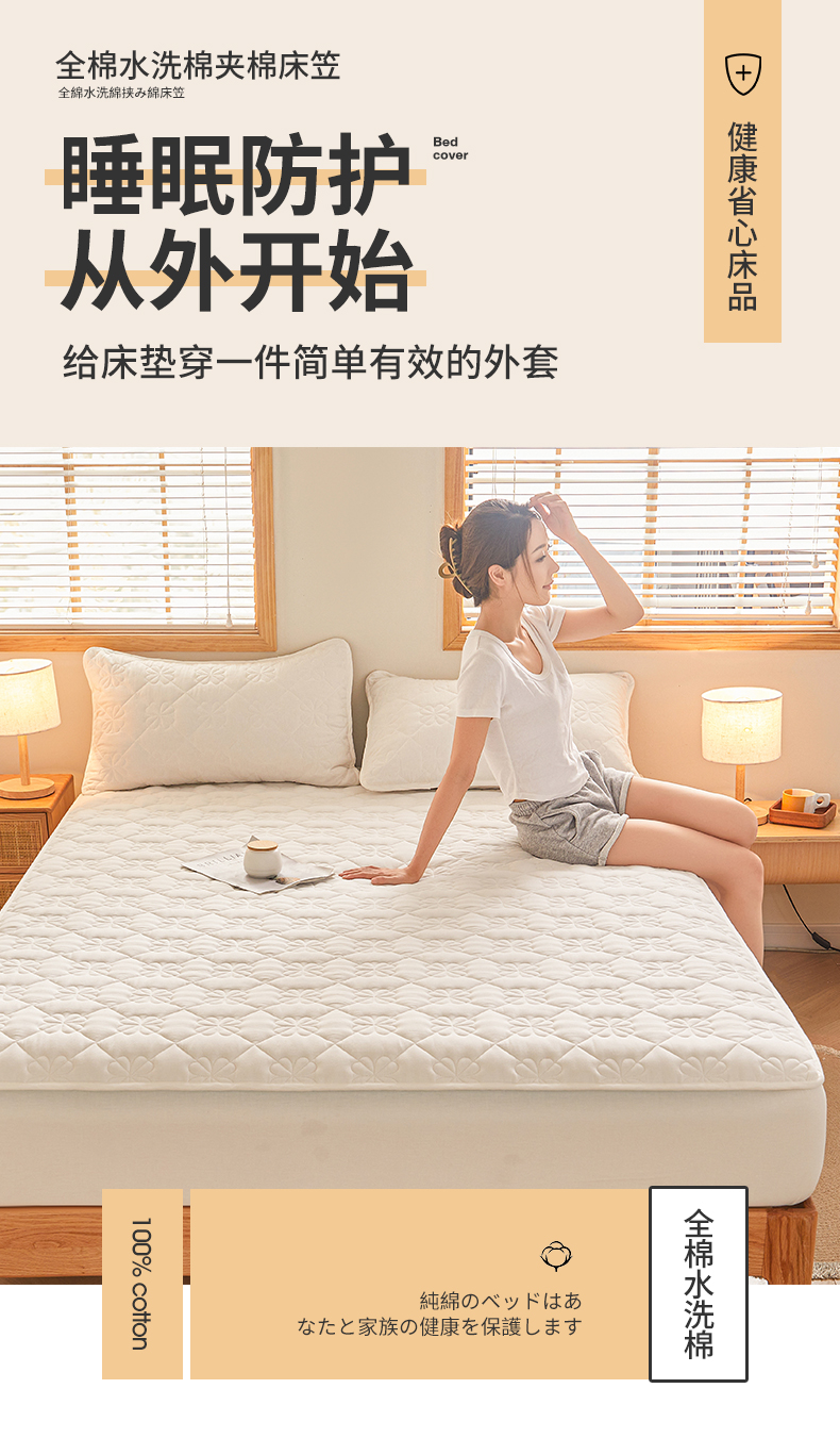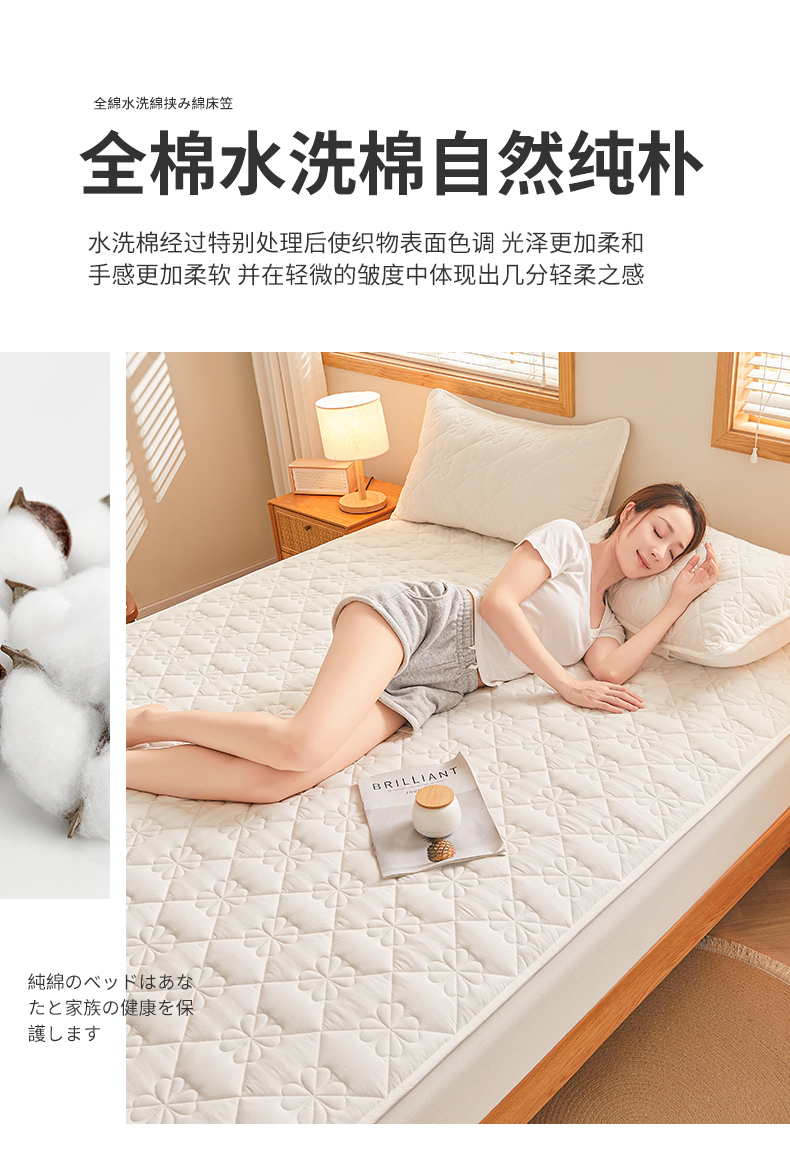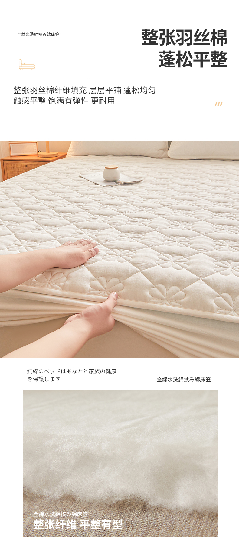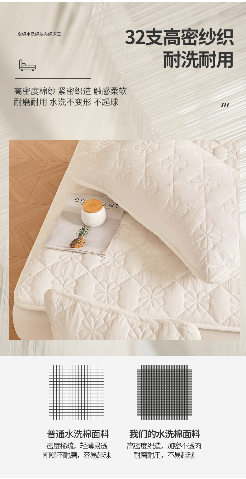 商品名称:3C 2024新款全棉水洗棉夹棉床笠-浅语系列 浅语-云朵白