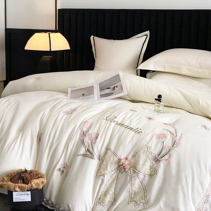 总宅家居 2024新款秘密花园系列轻奢小香风纯棉刺绣长绒棉四件套,秘密花园-初夏粉,秘密花园-梵星蓝,秘密花园-贵妃绿,秘密花园-奶昔白,秘密花园-香槟金