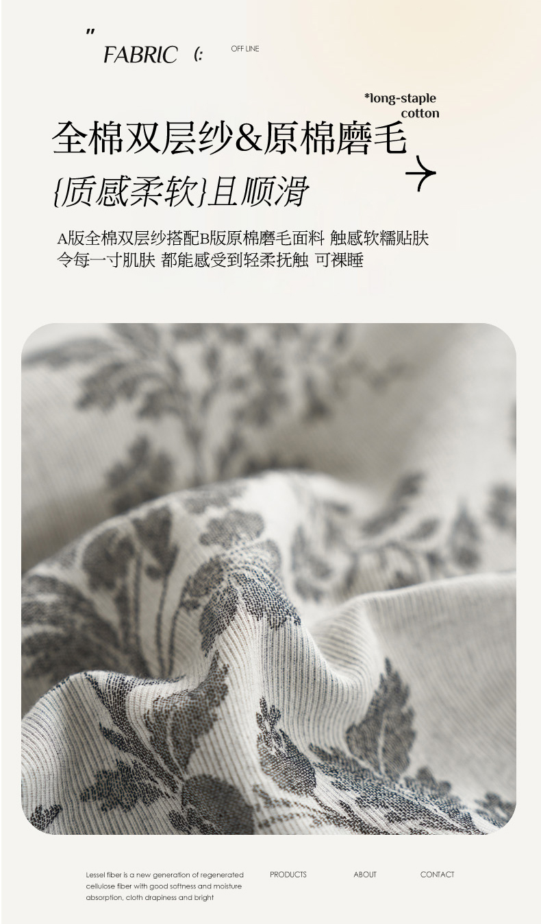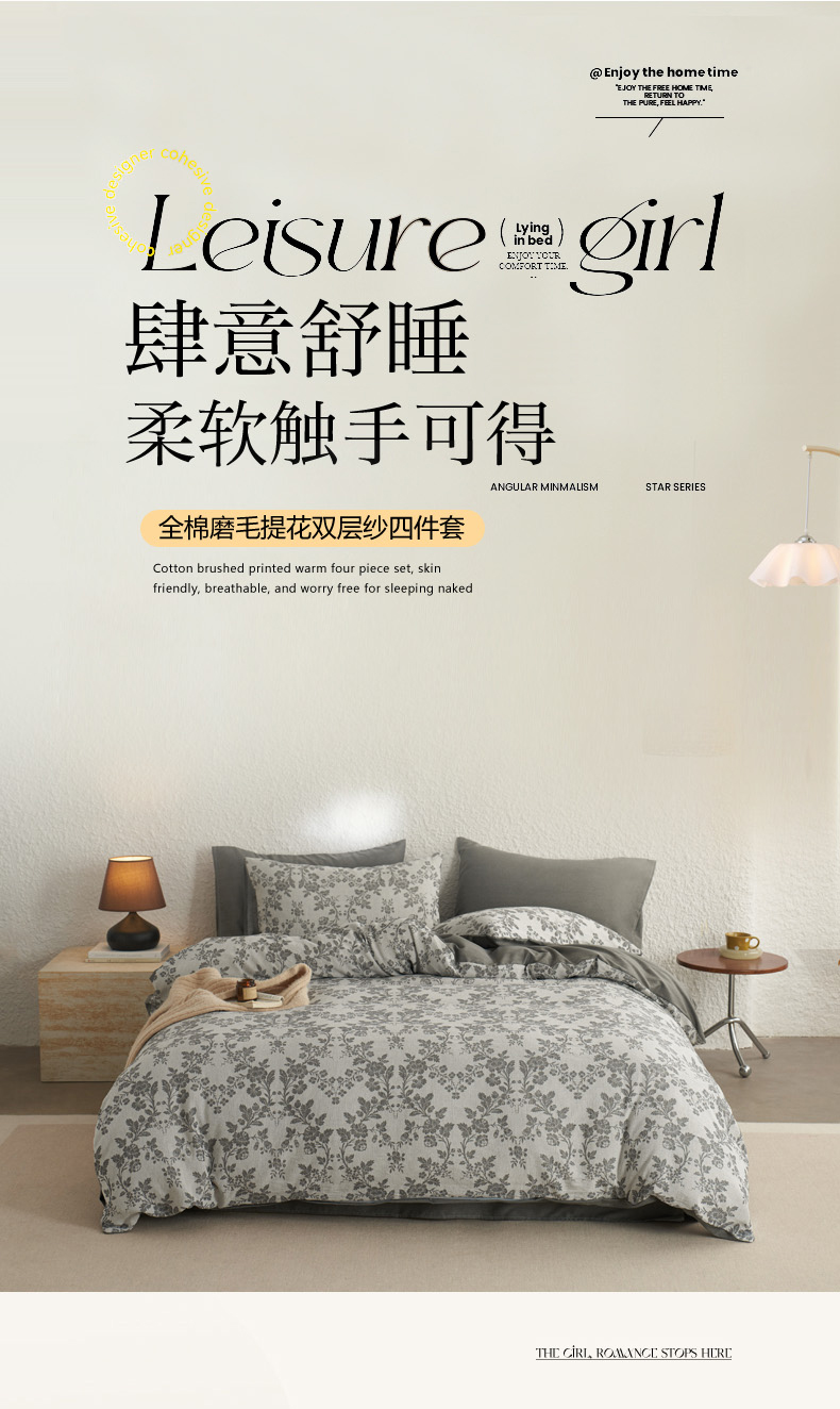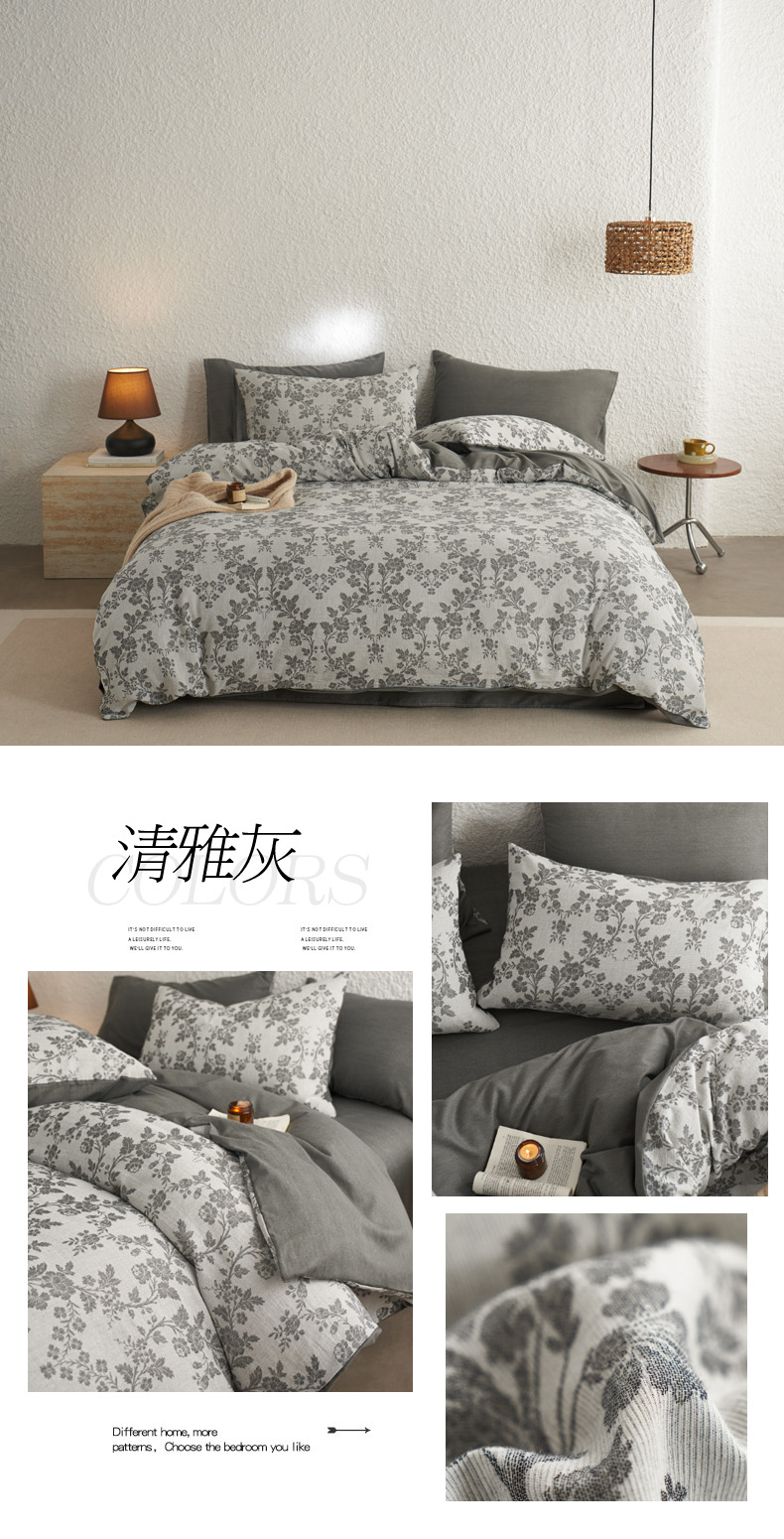 当前位置: 91家纺网 > 商品网购 > 床品套件 > 四件套 > 普通磨毛四件套 > 慕尚家纺 2025新款磨毛提花双层纱四件套 清雅灰