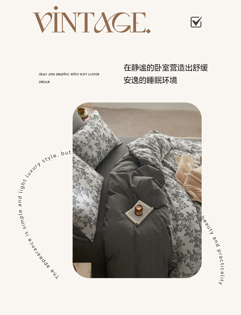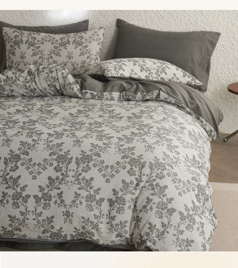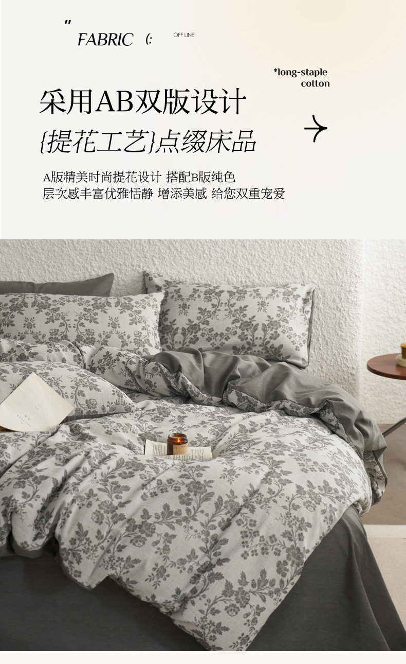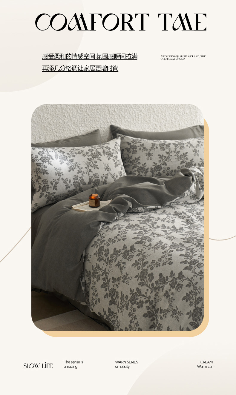 当前位置: 91家纺网 > 商品网购 > 床品套件 > 四件套 > 普通磨毛四件套 > 慕尚家纺 2025新款磨毛提花双层纱四件套 清雅灰