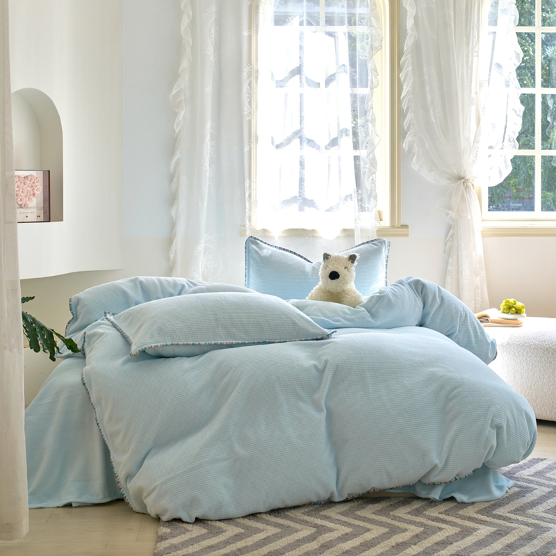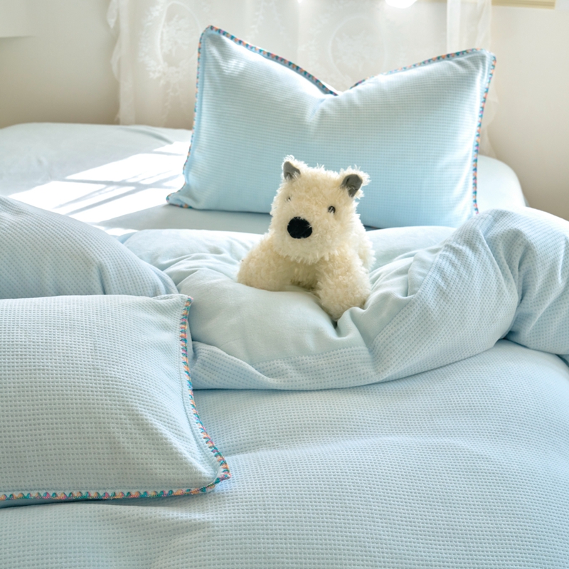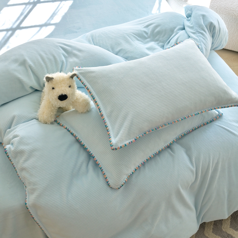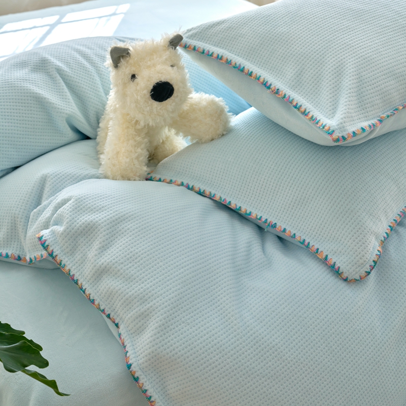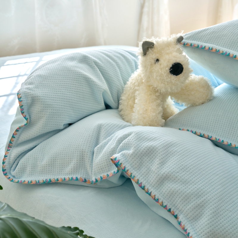 洋铭区(原狠狠爱) 2024新款华夫格 绒(彩边)四件套 云水蓝
