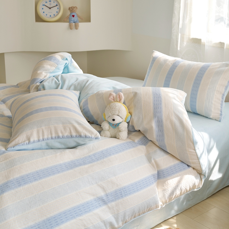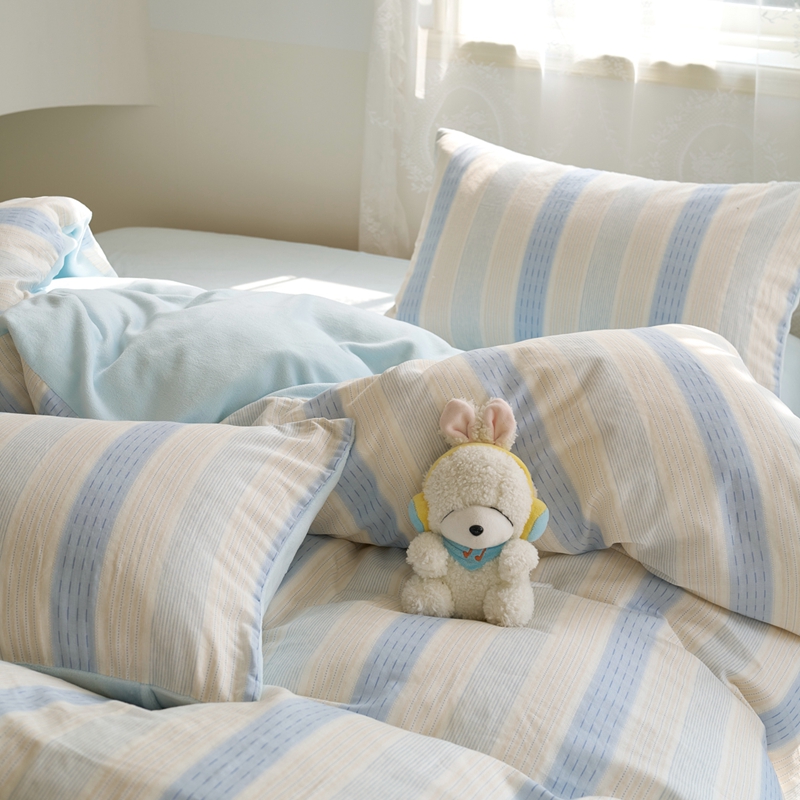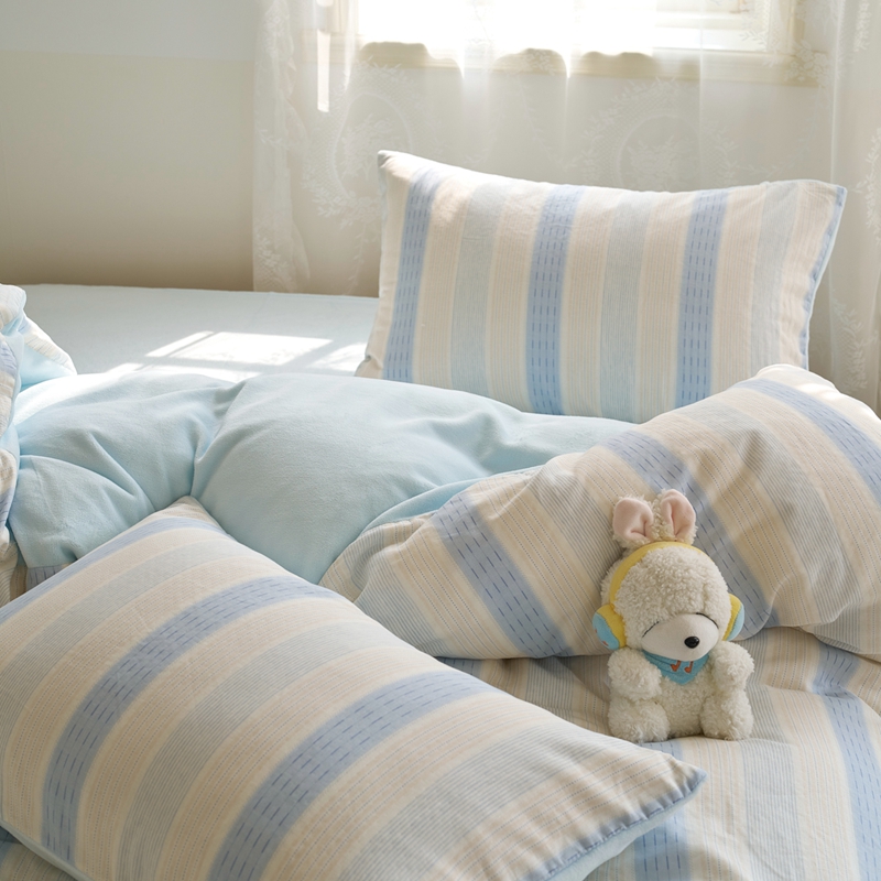 洋铭区(原狠狠爱) 2024新款双层纱牛奶绒四件套系列 芝士蓝条