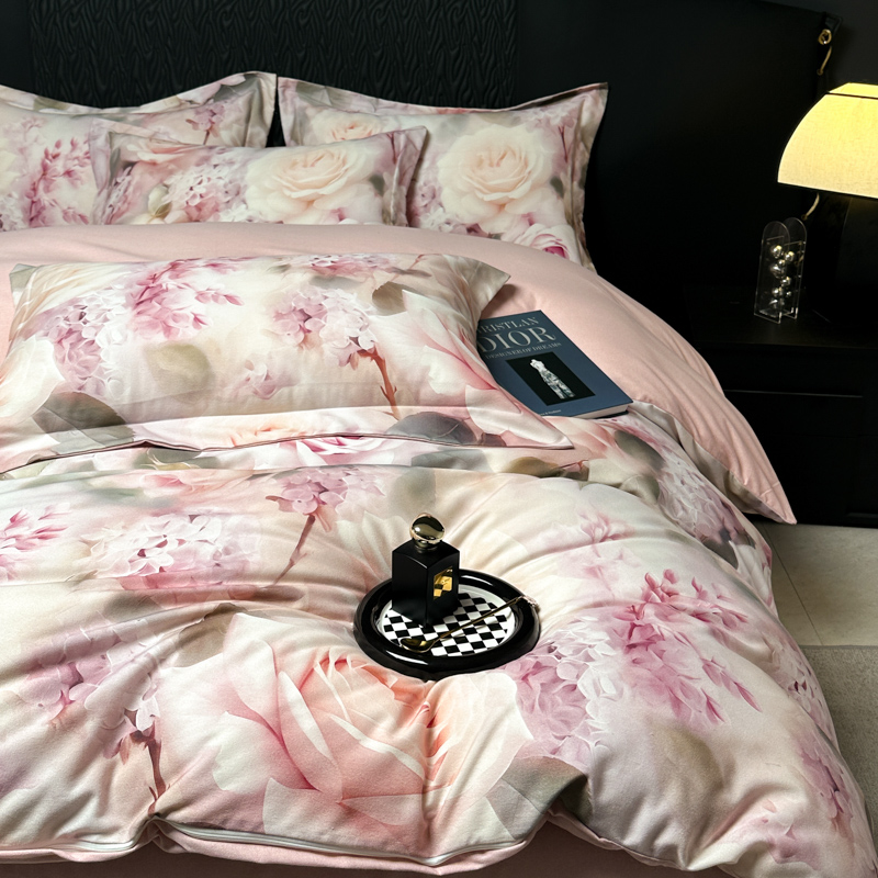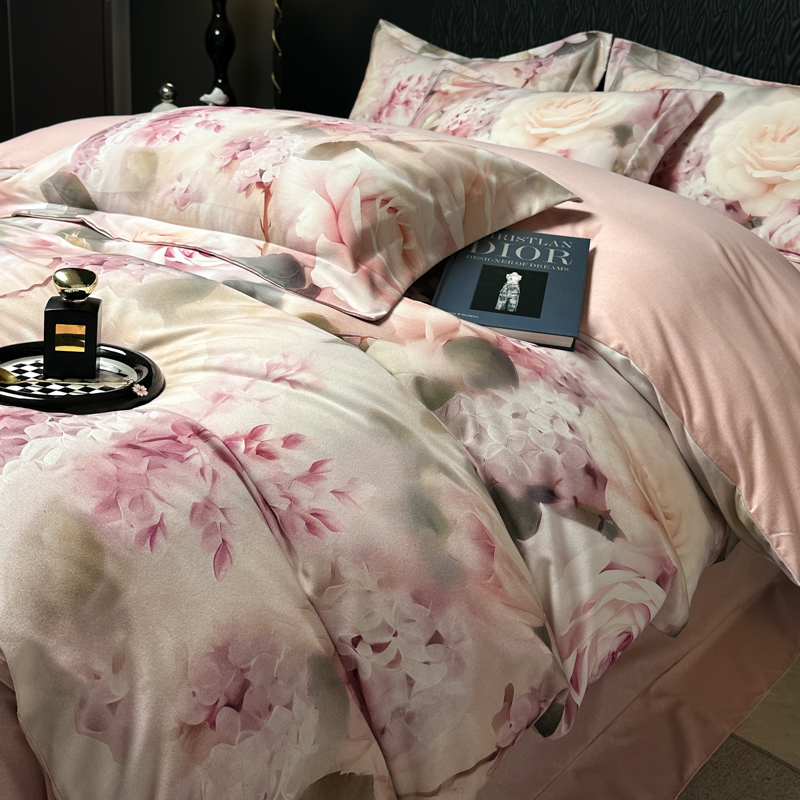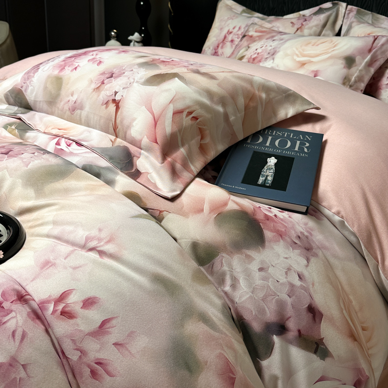 (总)宅家居 2023新款 设计款轻奢高精密贡缎提花臻品真丝四件套,迪奥-宾利蓝,迪奥-银灰,山茶花-粉玉,山茶花-蓝灰,山茶花-浅紫,香乃乃-米白