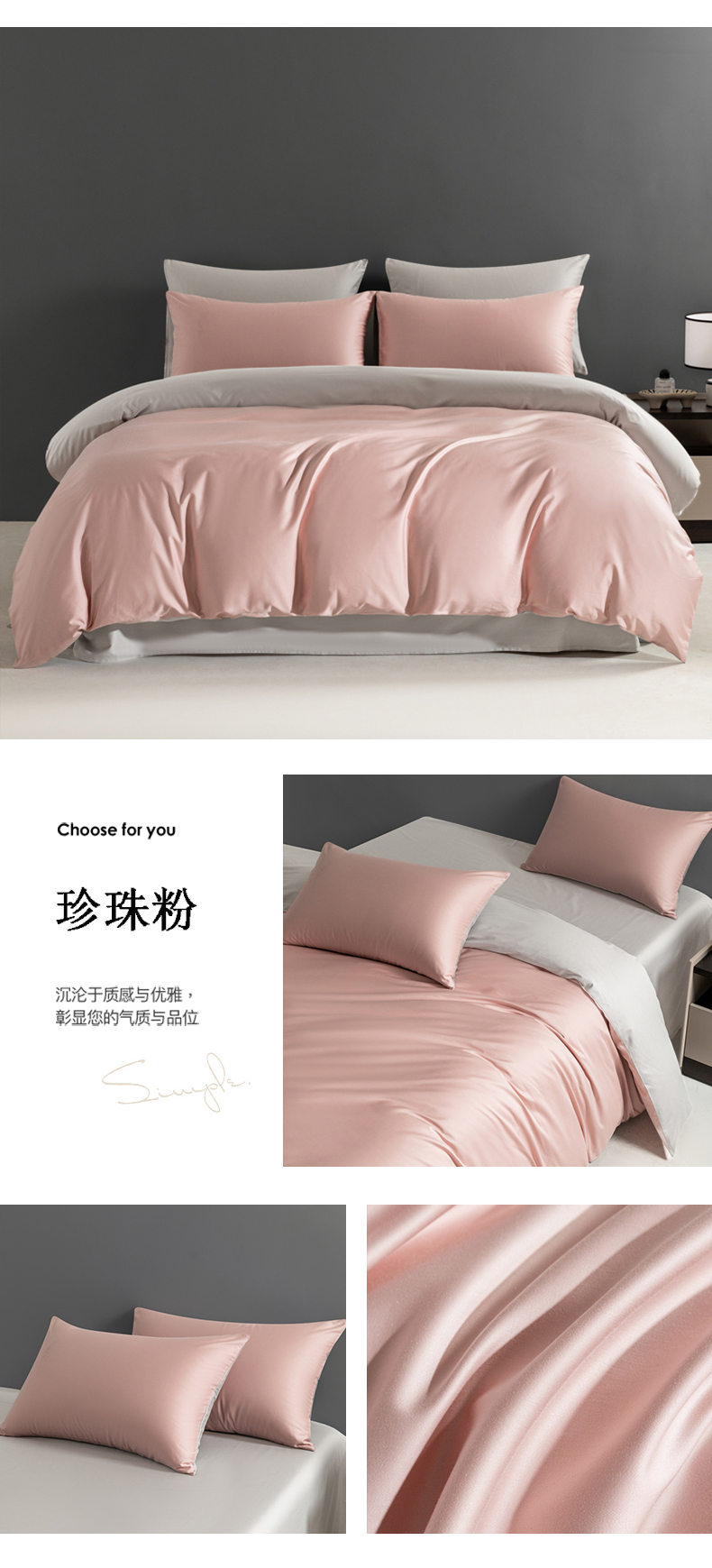 商品名称:淳绵家居 2024新款50*50S长绒棉纯色定制四件套特殊尺寸一件可定被套枕套床单床笠-孚星 珍珠粉+浅灰色