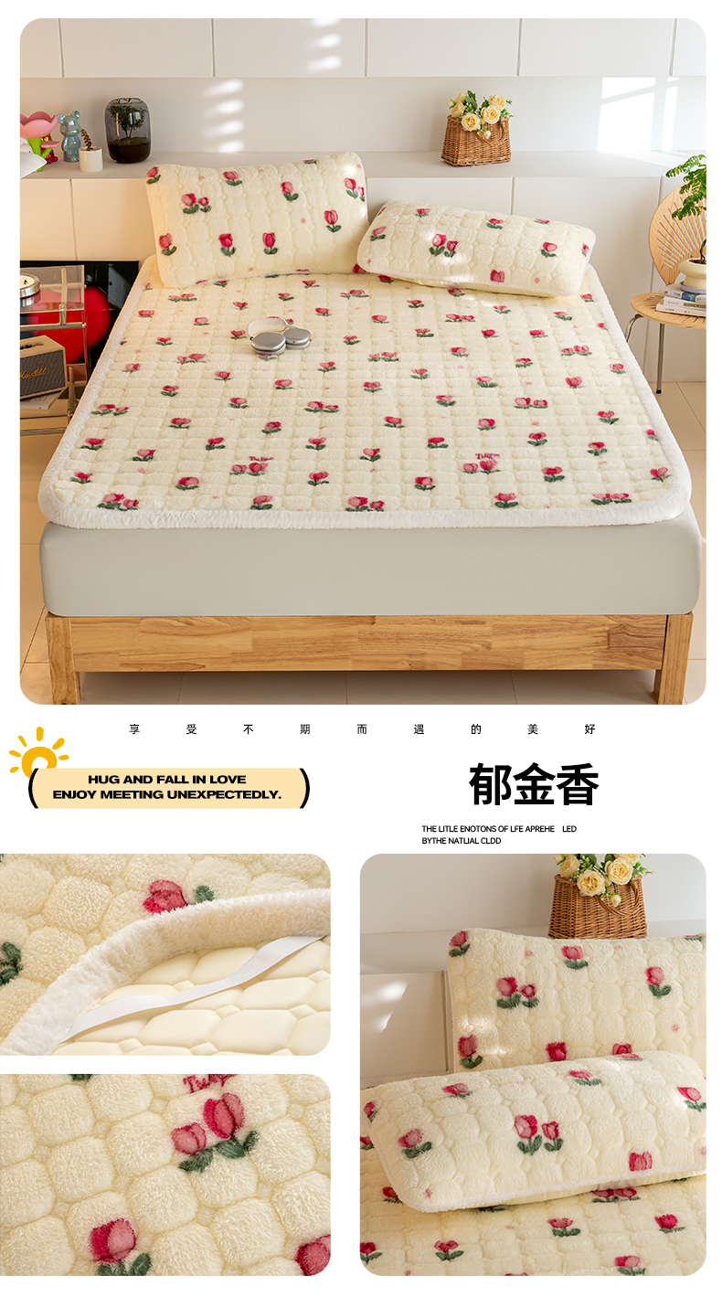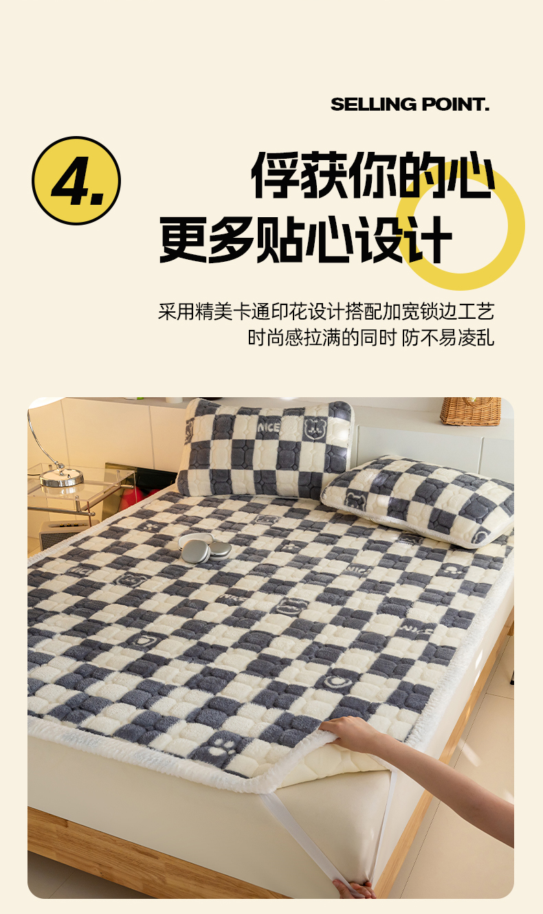 花言狐语 2025新款北极绒保暖夹棉加厚床褥-大床 耍酷熊