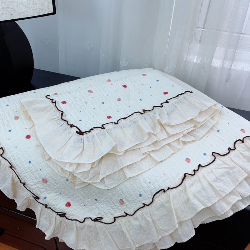 商品名称:暖居 2024新款韩系高温砂洗棉花泡泡花边款床盖三件套绗缝加棉防滑床单 草莓气泡