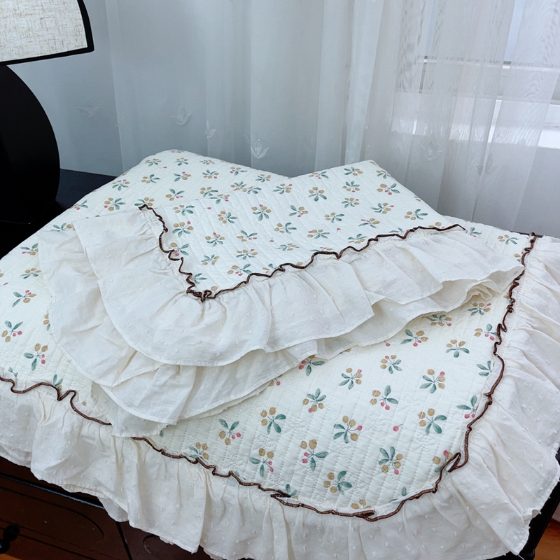 商品名称:暖居 2024新款韩系高温砂洗棉花泡泡花边款床盖三件套绗缝加棉防滑床单 柚叶