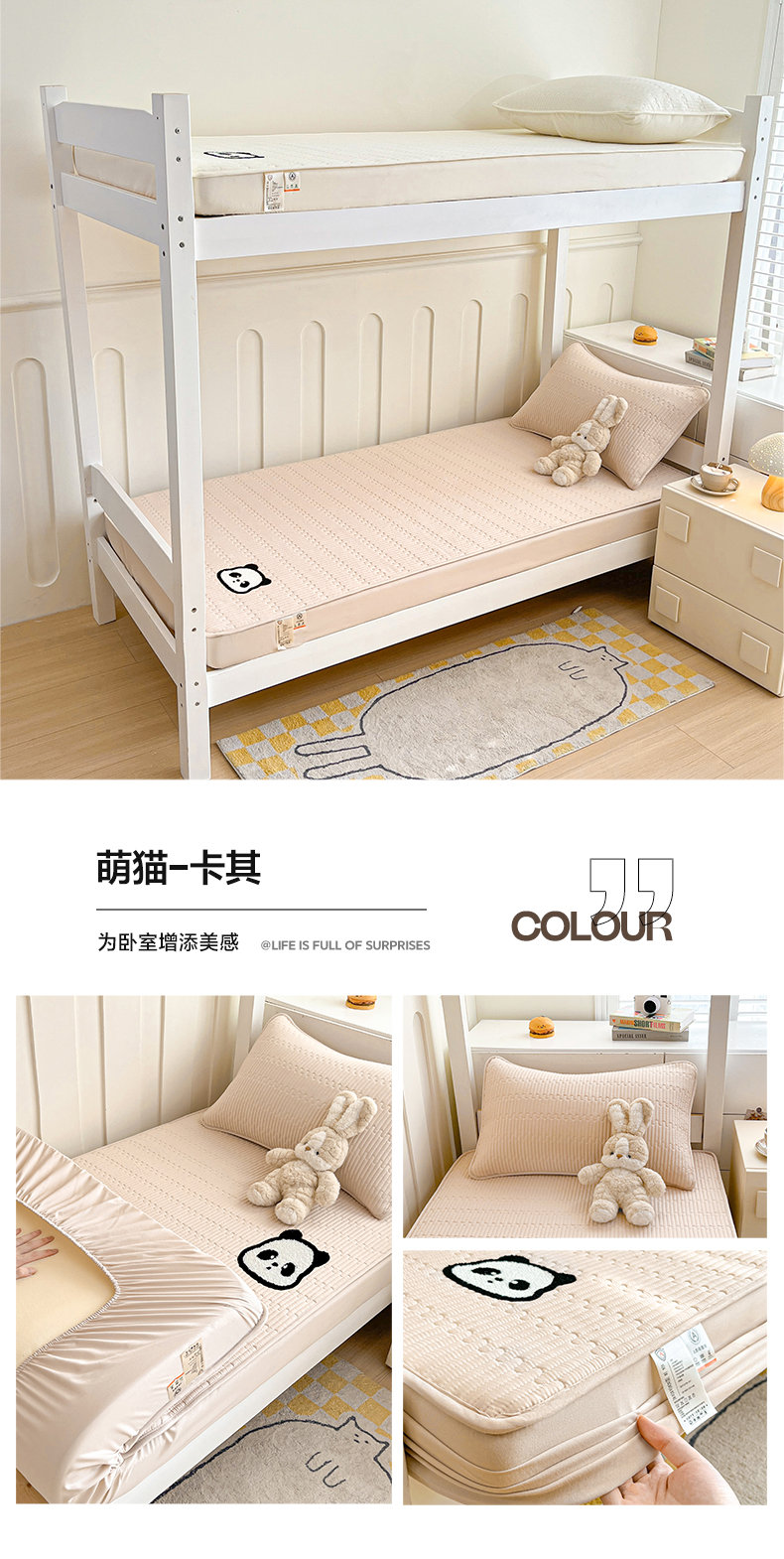 商品名称:(总)芬晴家纺 2024新款A类母婴级毛巾绣夹棉床笠-萌猫-学生款