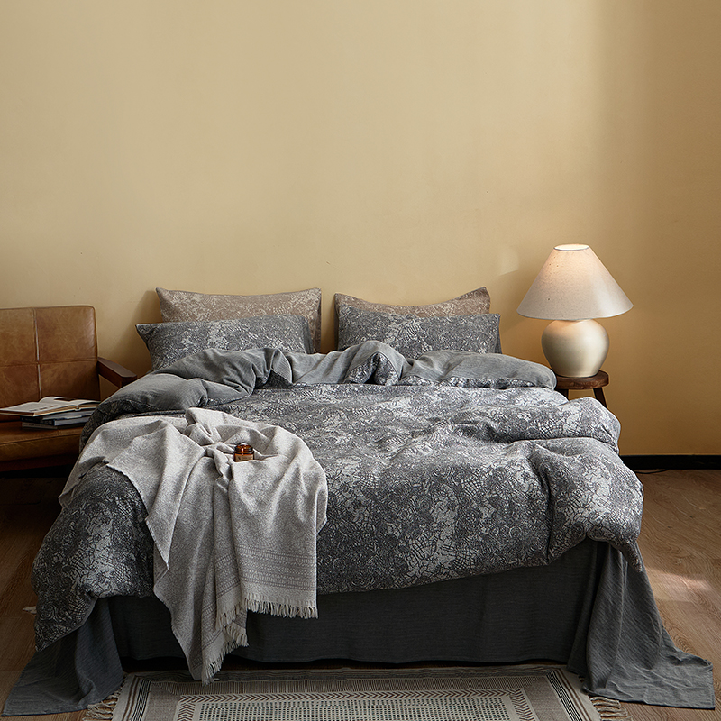 子和家居 2024新款全棉加厚款色织提花四件套 诗笺银币灰