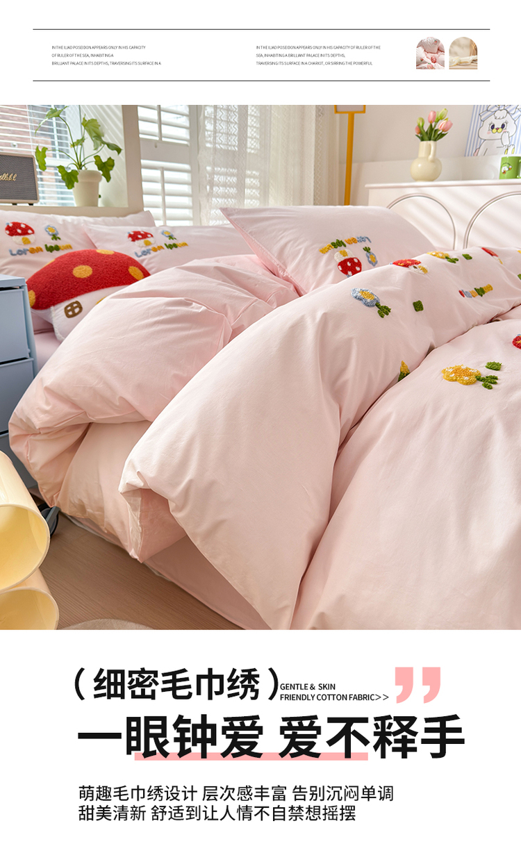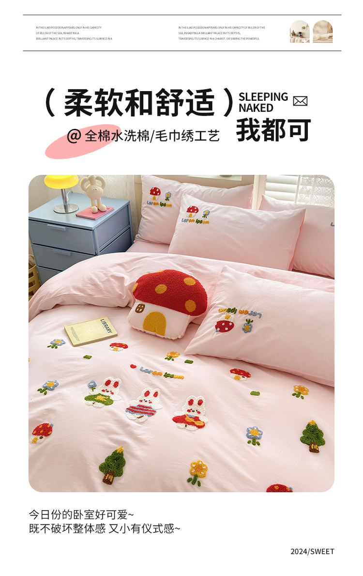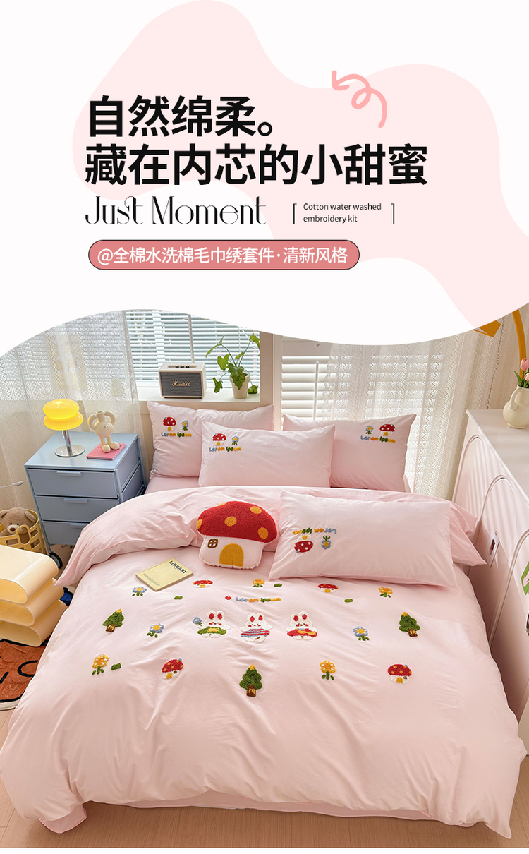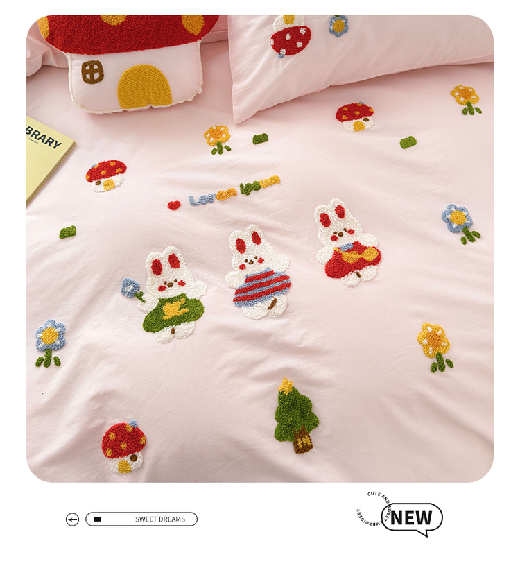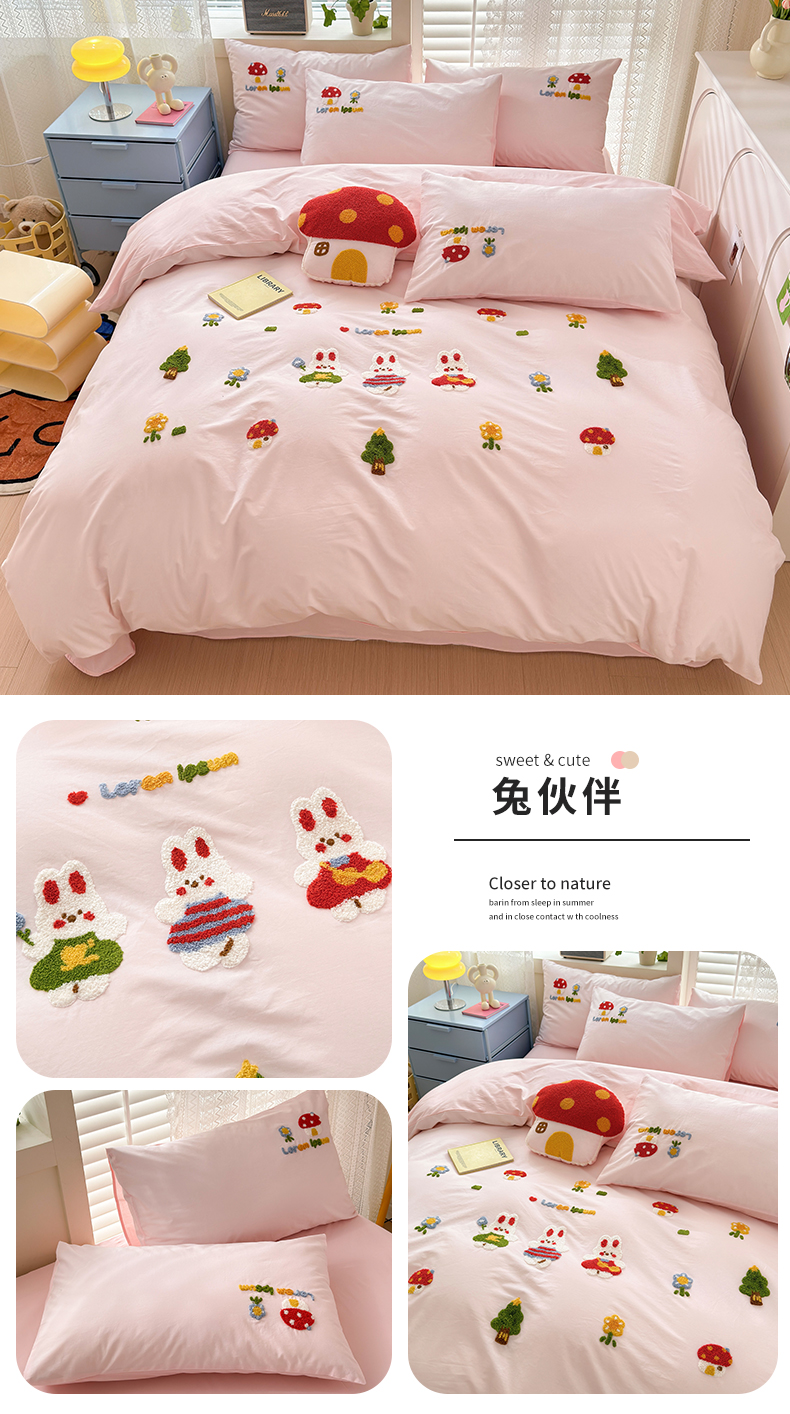 商品名称:买家秀热款花型不断货 母婴级A类ins风水洗棉四件套水洗棉毛巾绣四件套水洗棉床笠四件套提花绣花四件套 兔伙伴