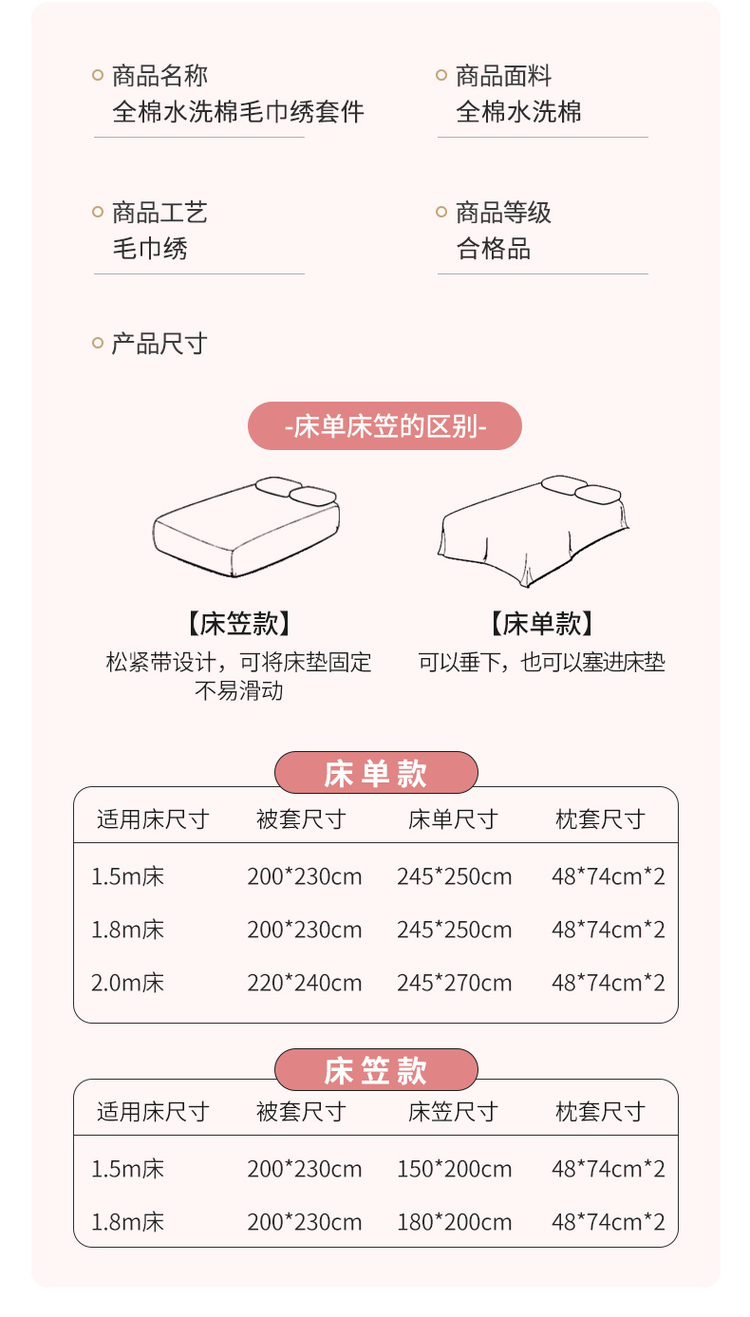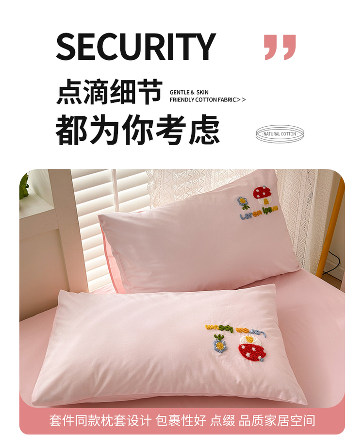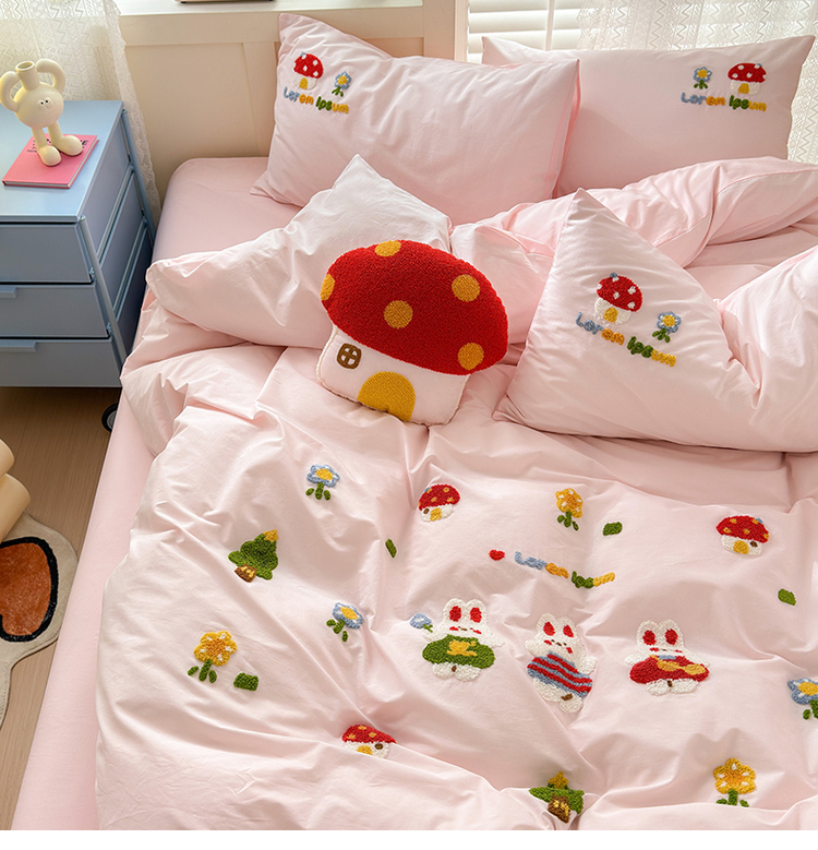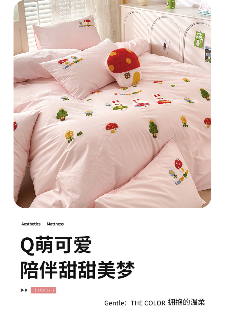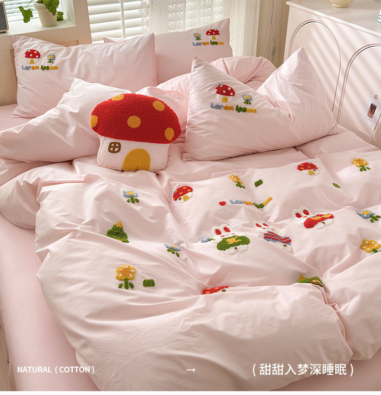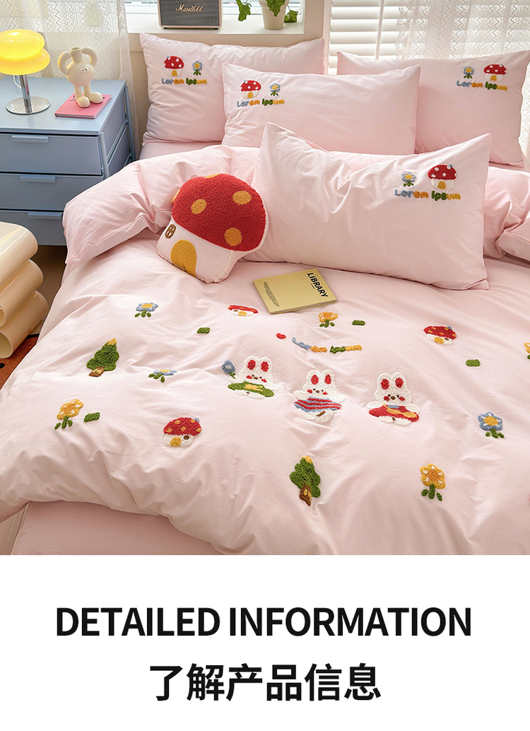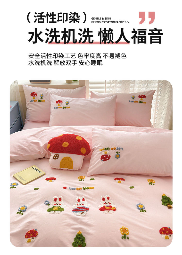 商品名称:买家秀热款花型不断货 母婴级A类ins风水洗棉四件套水洗棉毛巾绣四件套水洗棉床笠四件套提花绣花四件套 兔伙伴