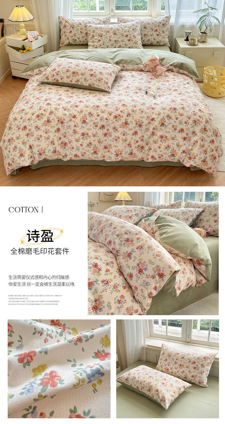 (总)(优质买家秀 热卖不断货)A类母婴级纯棉全棉磨毛四件套全棉纯棉全棉磨毛四件套百分百纯棉全棉磨毛四件套
